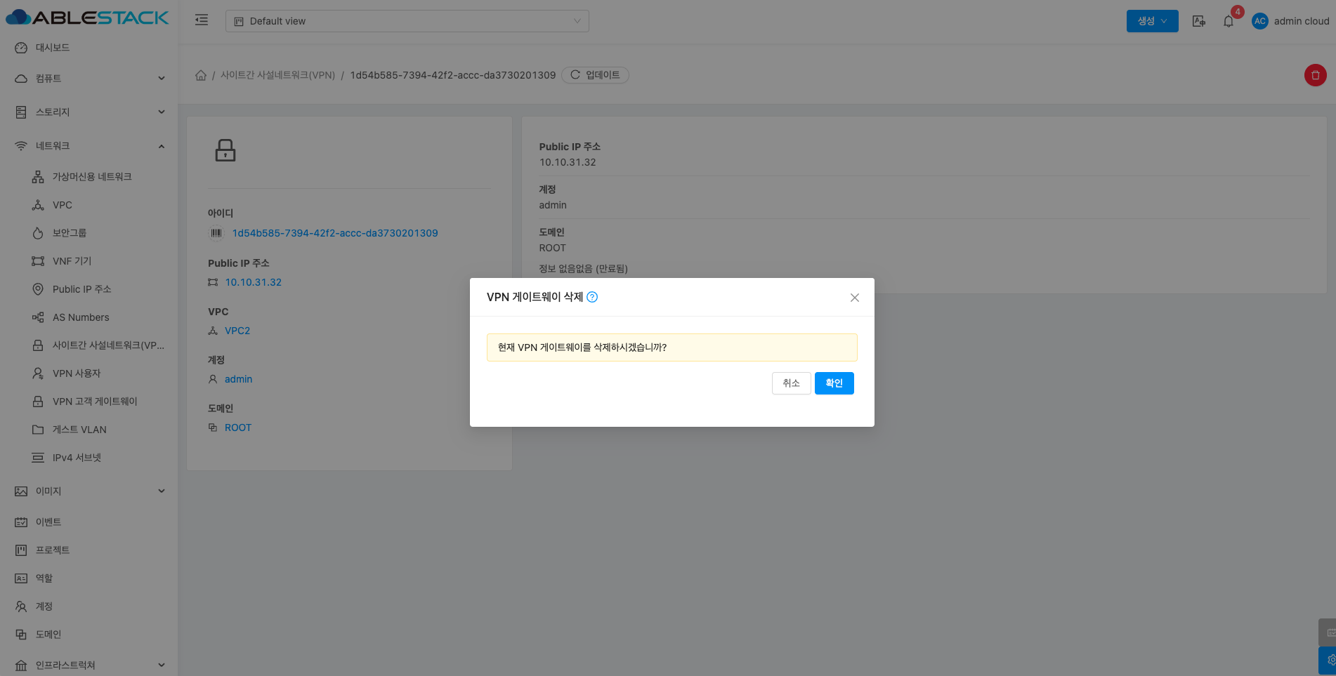 - 확인 버튼을 클릭하여 VPN 게이트웨이를 생성합니다.