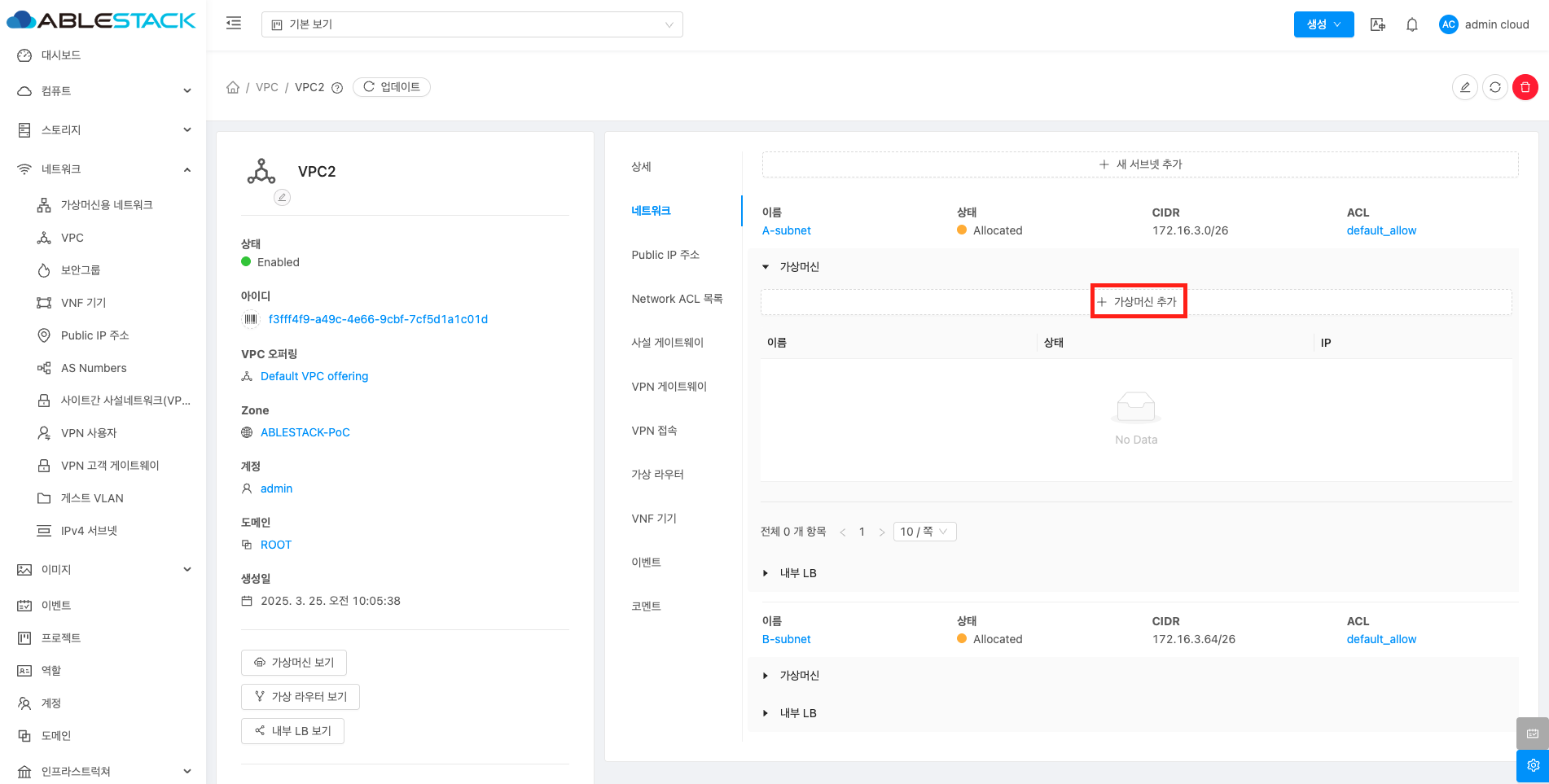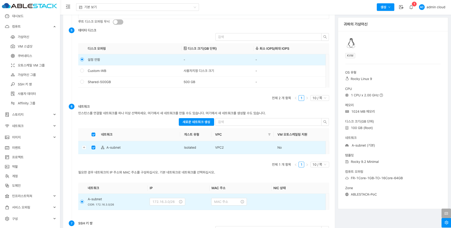 새 서브넷 가상머신 추가¶