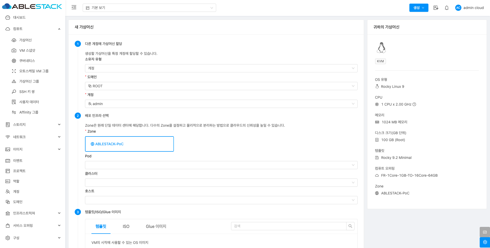 - Zone: Zone을 선택합니다.
