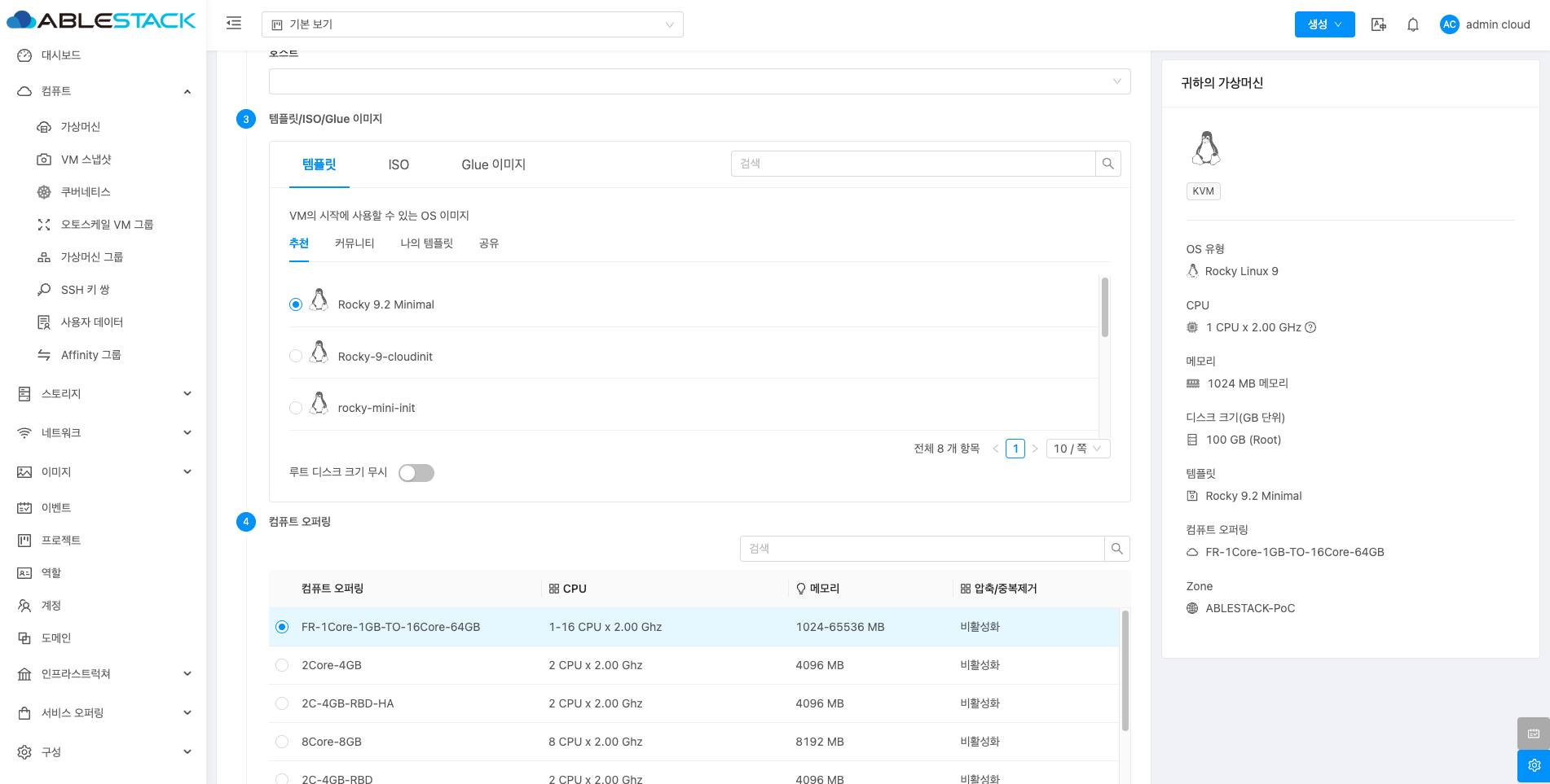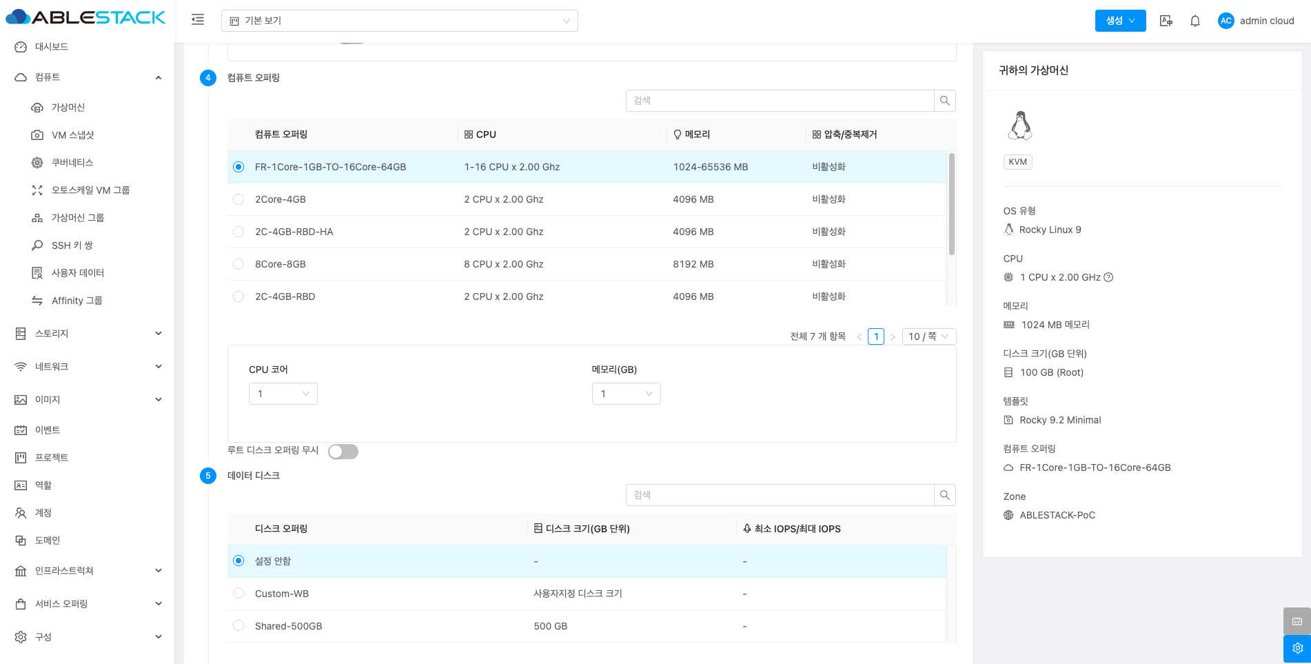 - 컴퓨트 오퍼링: 컴퓨트 오퍼링을 선택합니다.