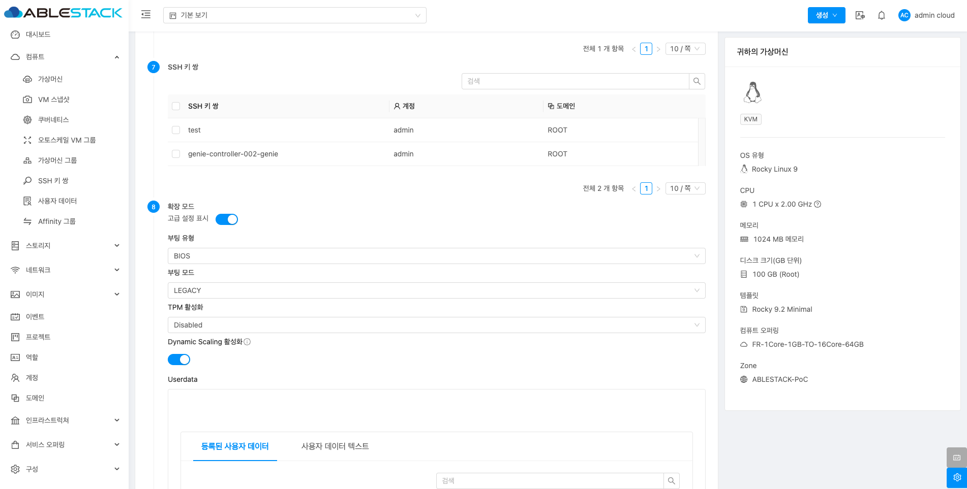 - SSH 키 쌍: SSH 키 쌍을 선택합니다. (필요시)