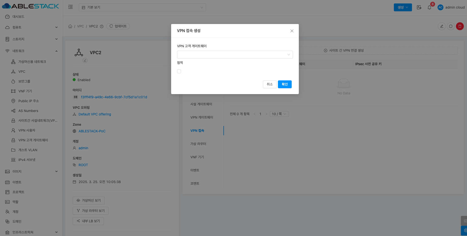 - 확인 버튼을 클릭하여 VPN 게이트웨이를 추가합니다.
