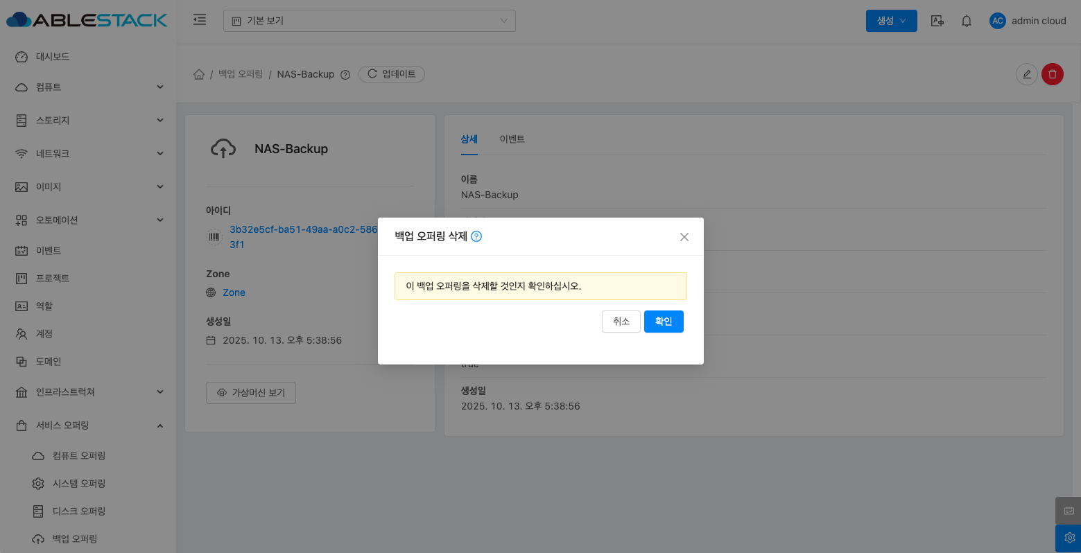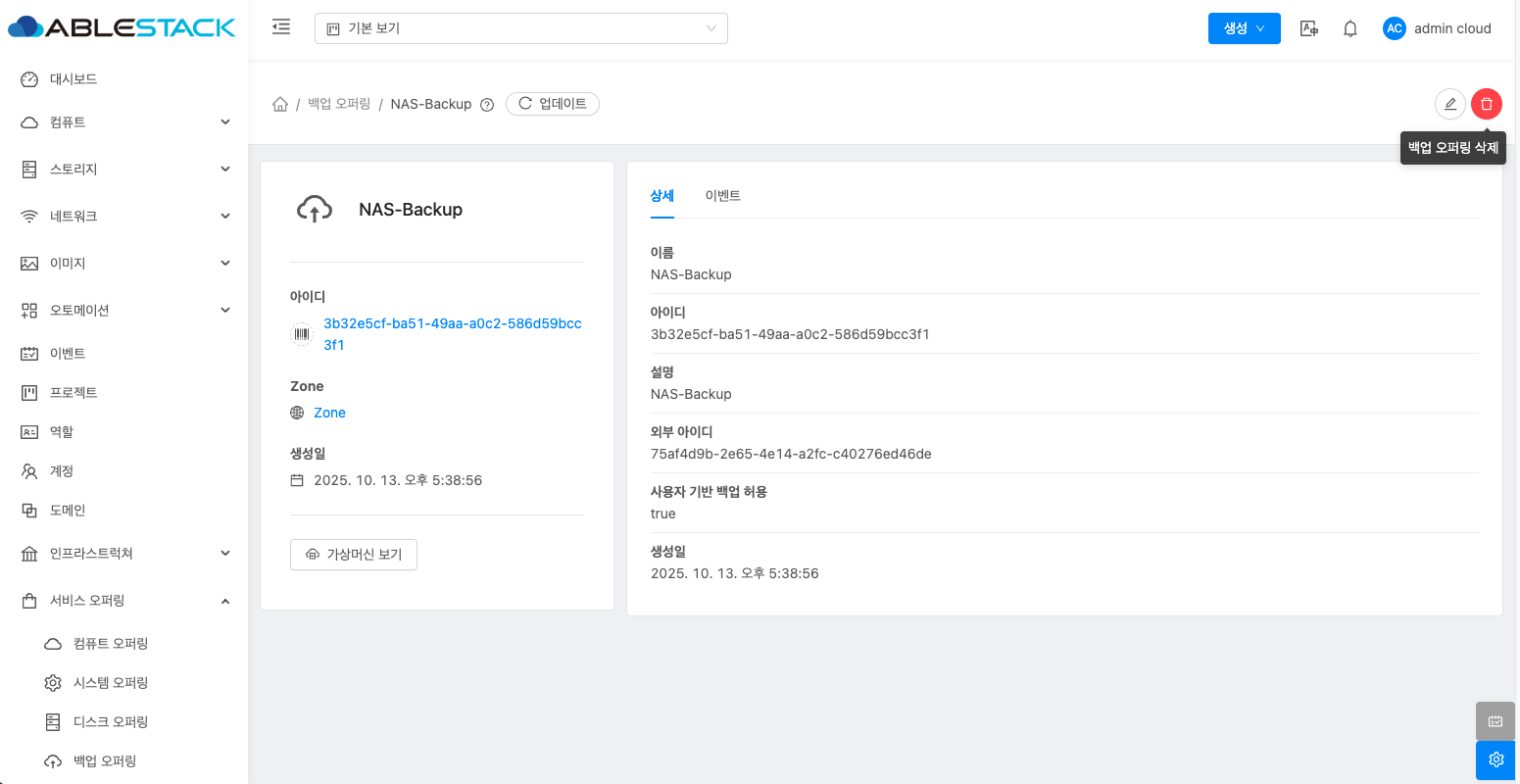 백업 오퍼링 삭제¶