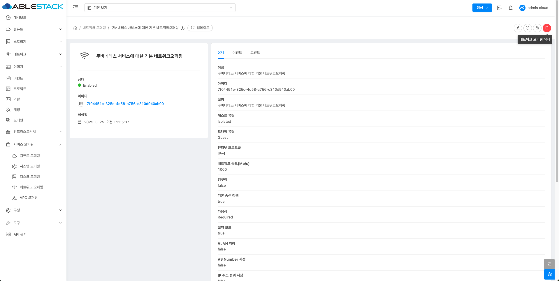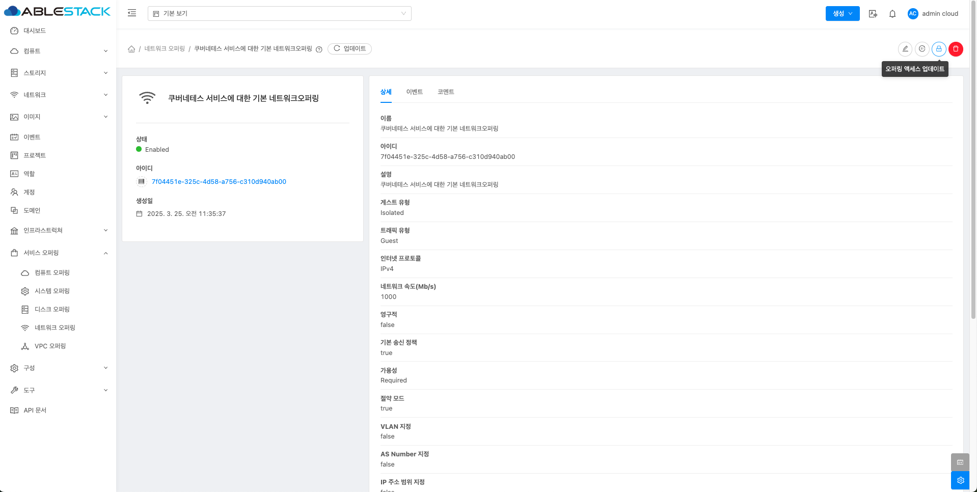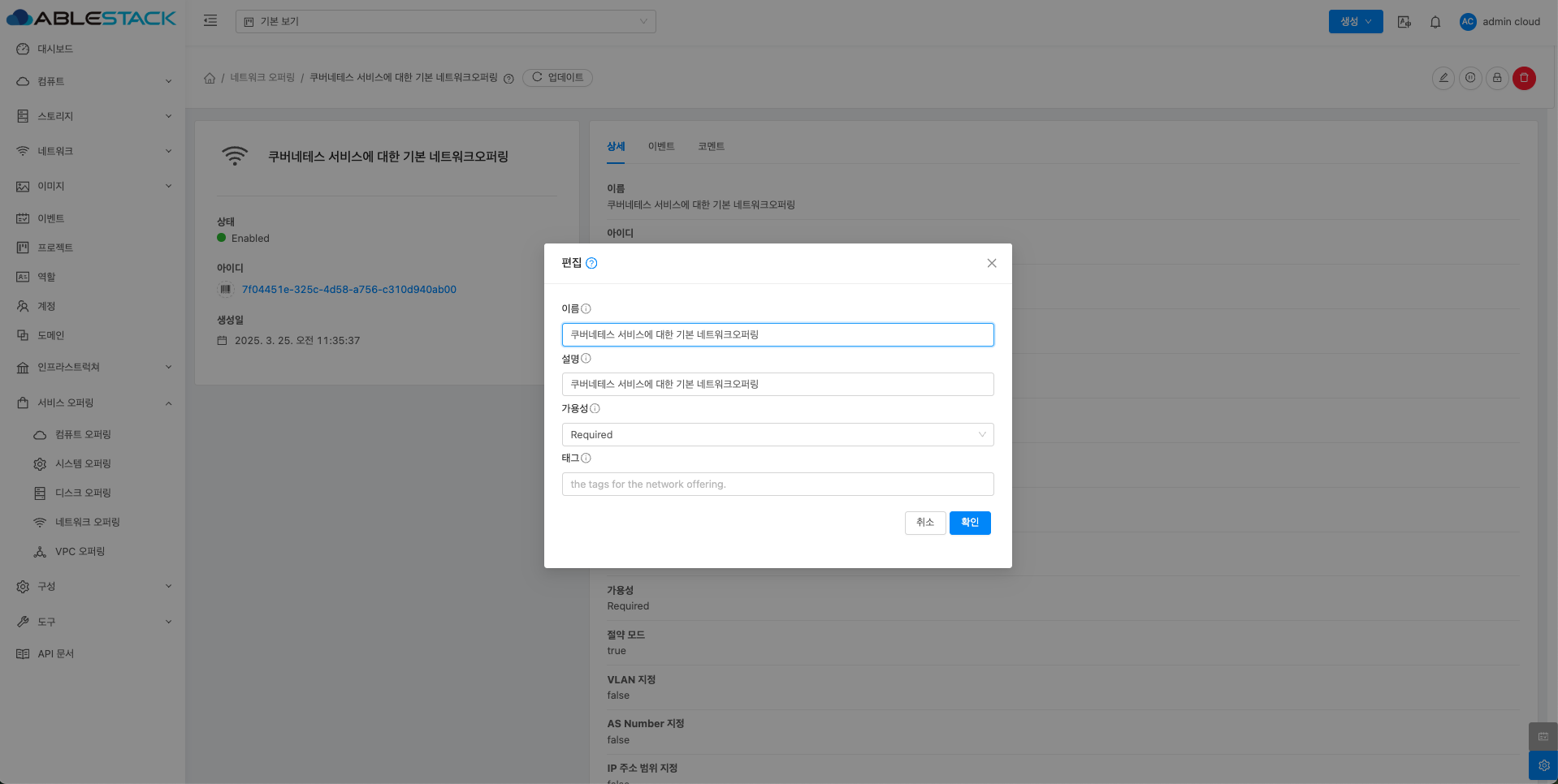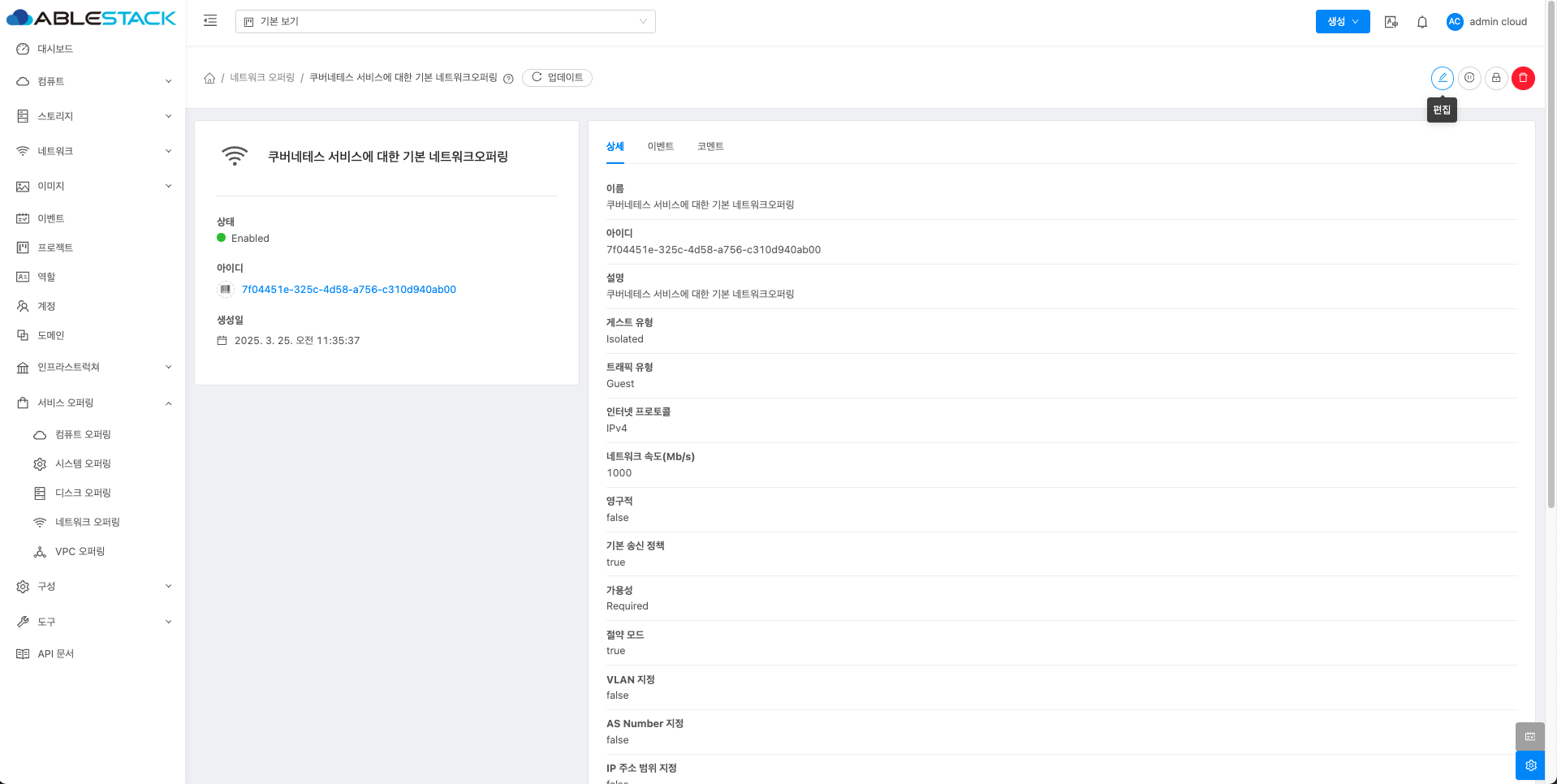 - 네트워크 오퍼링 상세 오른쪽 상단의 편집 버튼을 클릭합니다.