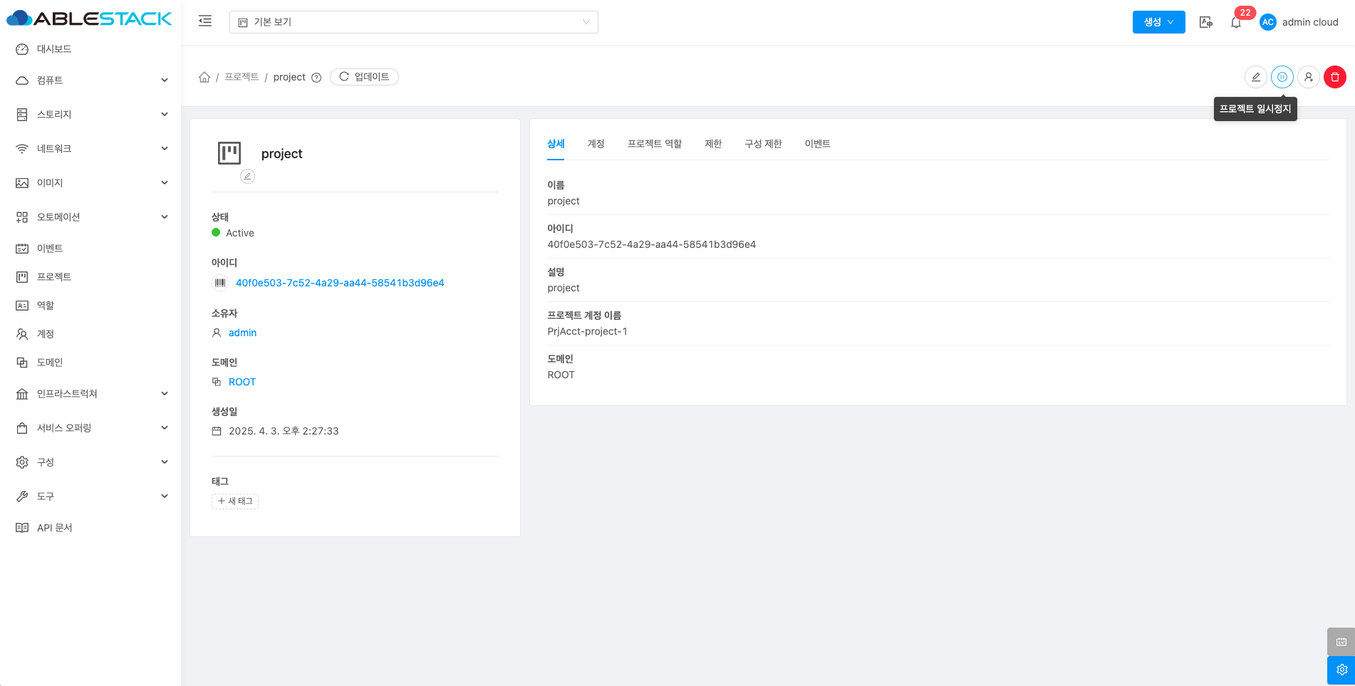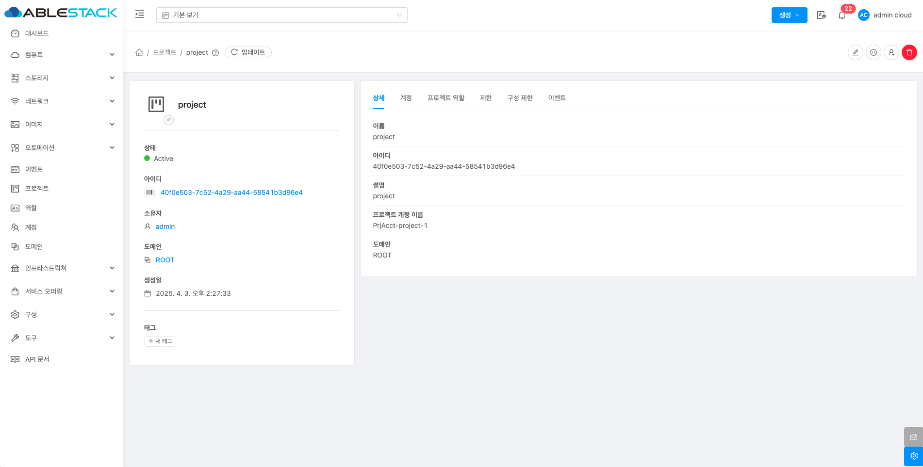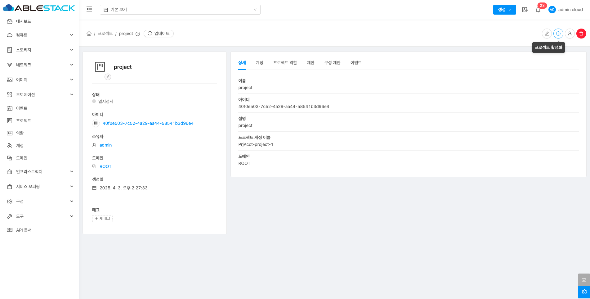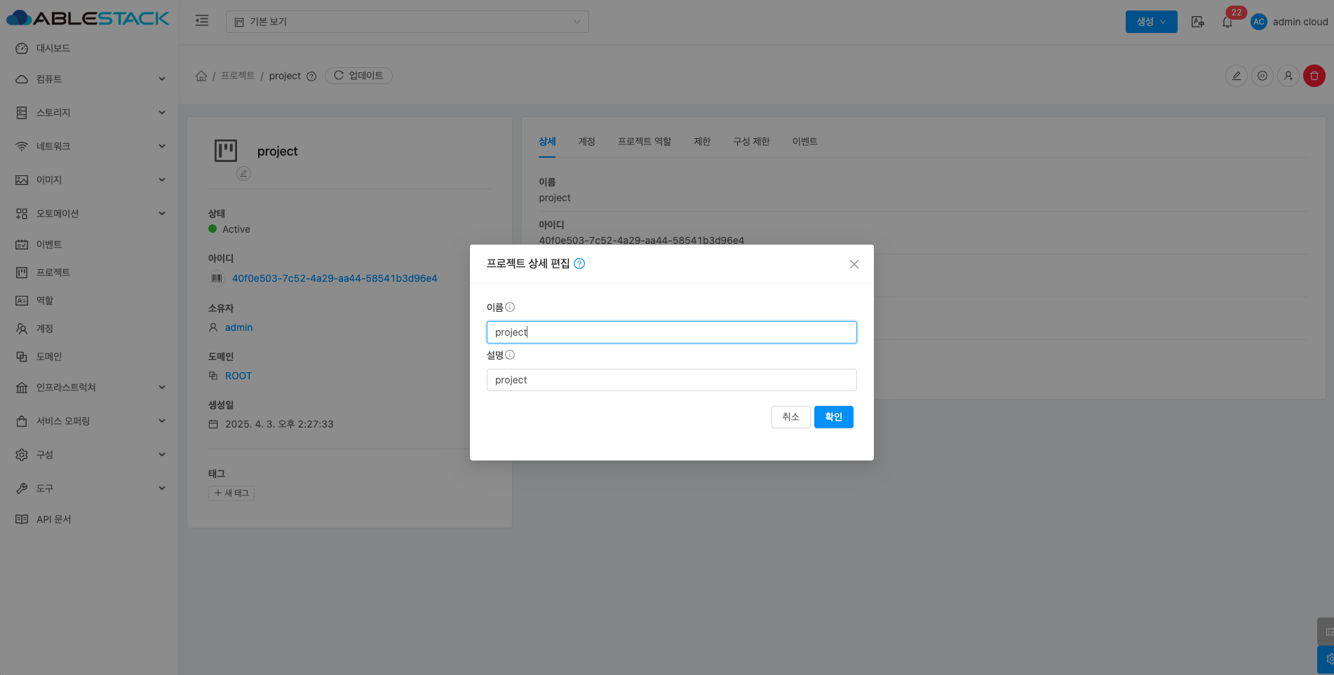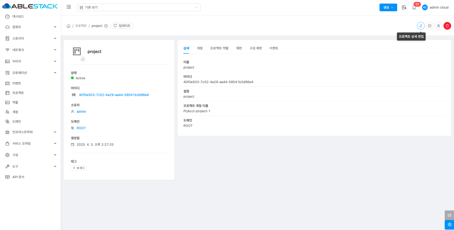 - 프로젝트 상세 편집 버튼을 클릭하여 프로젝트 상세 편집 화면을 호출합니다.