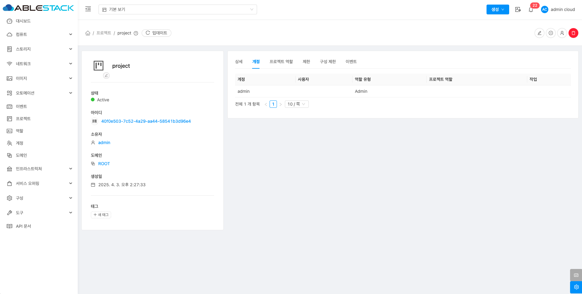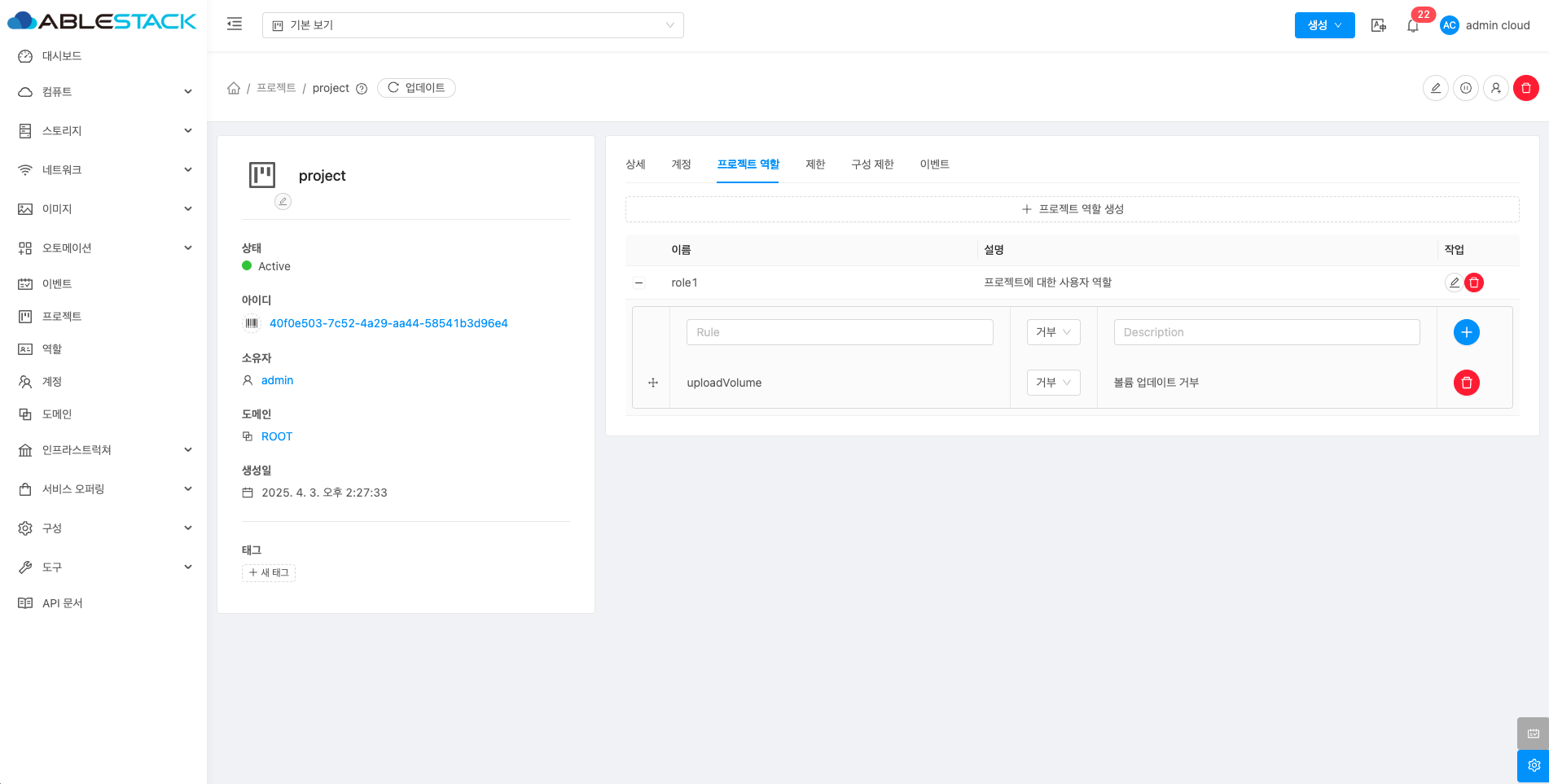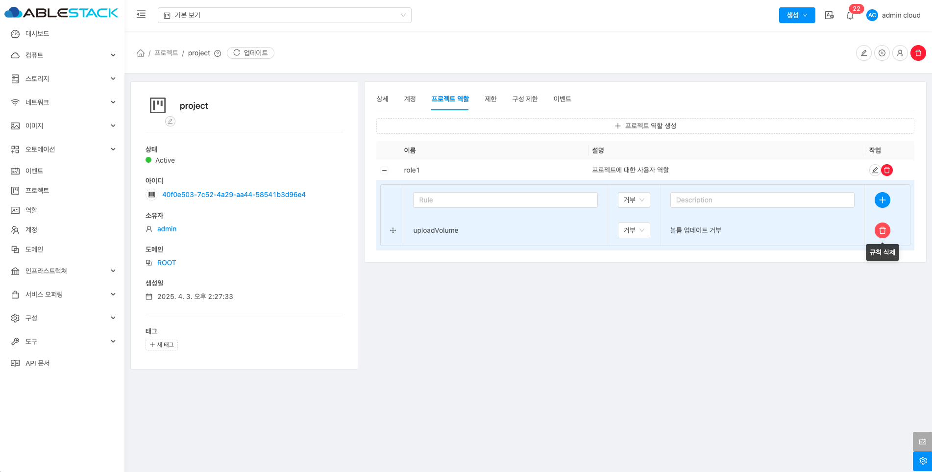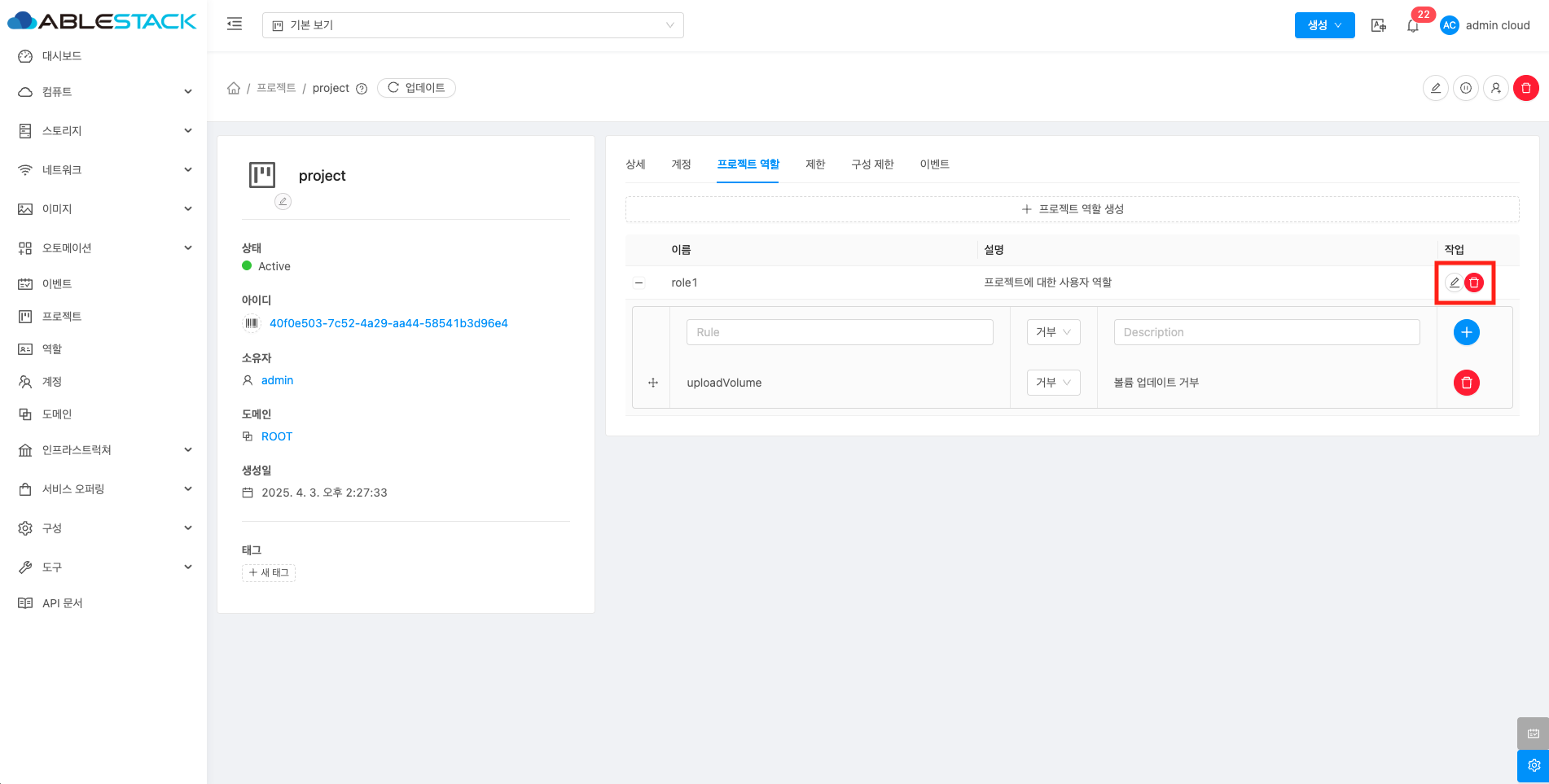 프로젝트 역할을 수정 및 삭제할 수 있습니다.