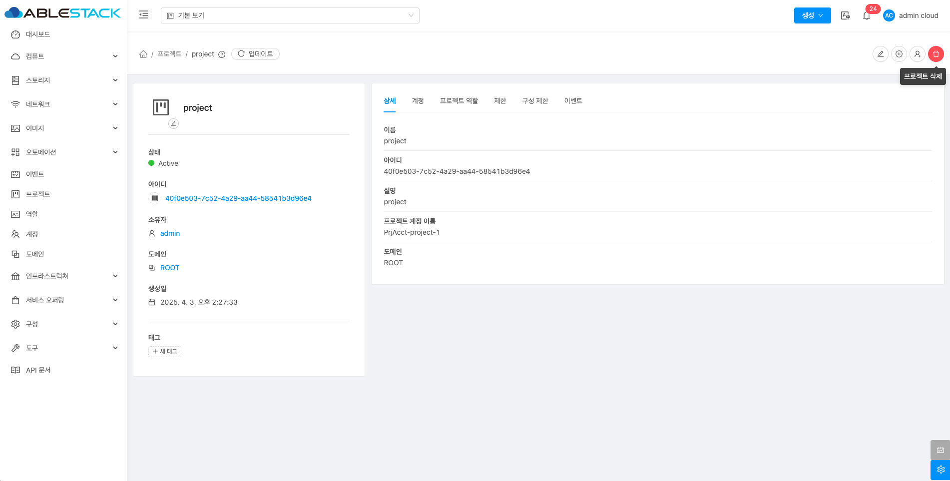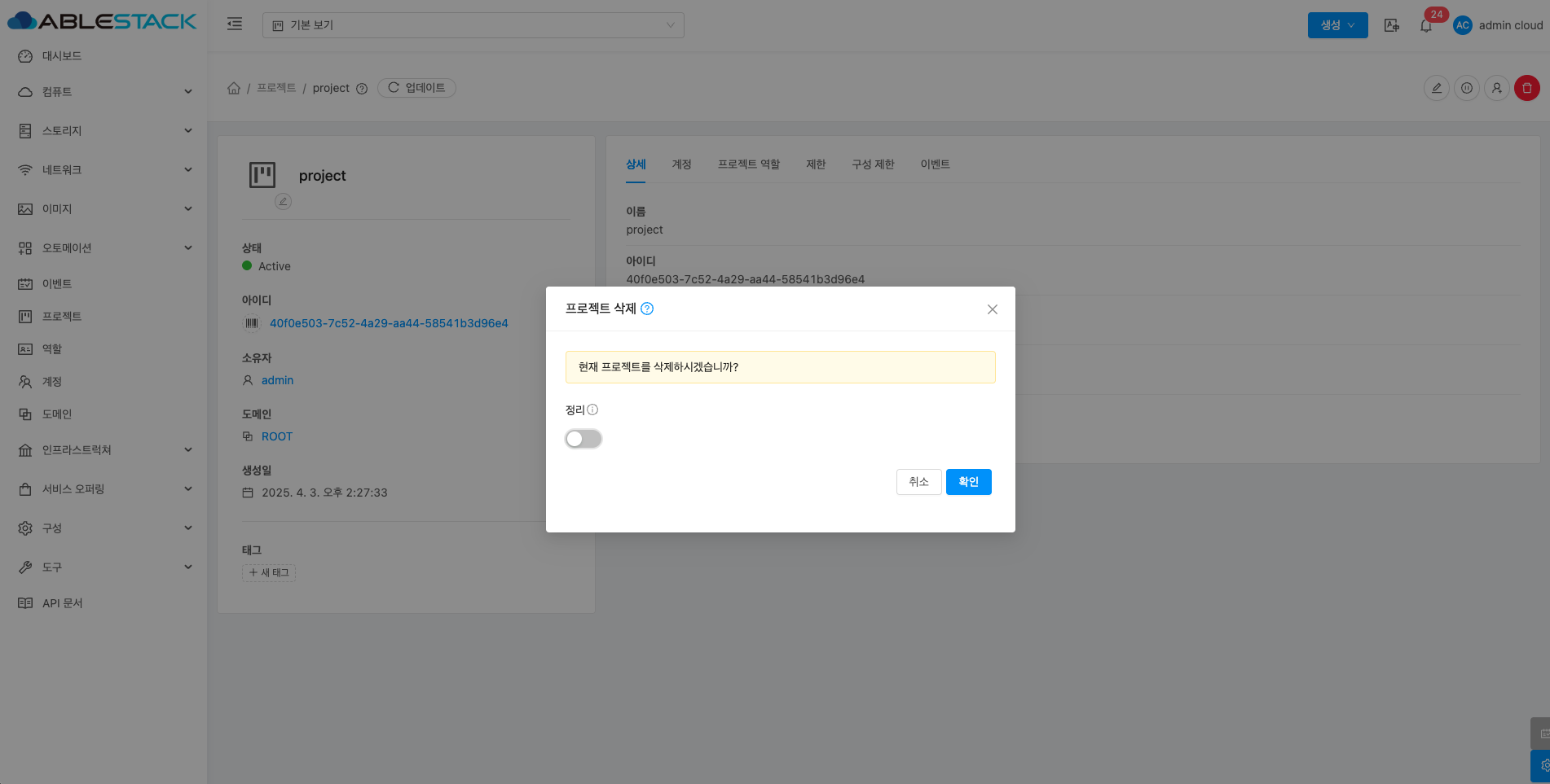 프로젝트 삭제¶