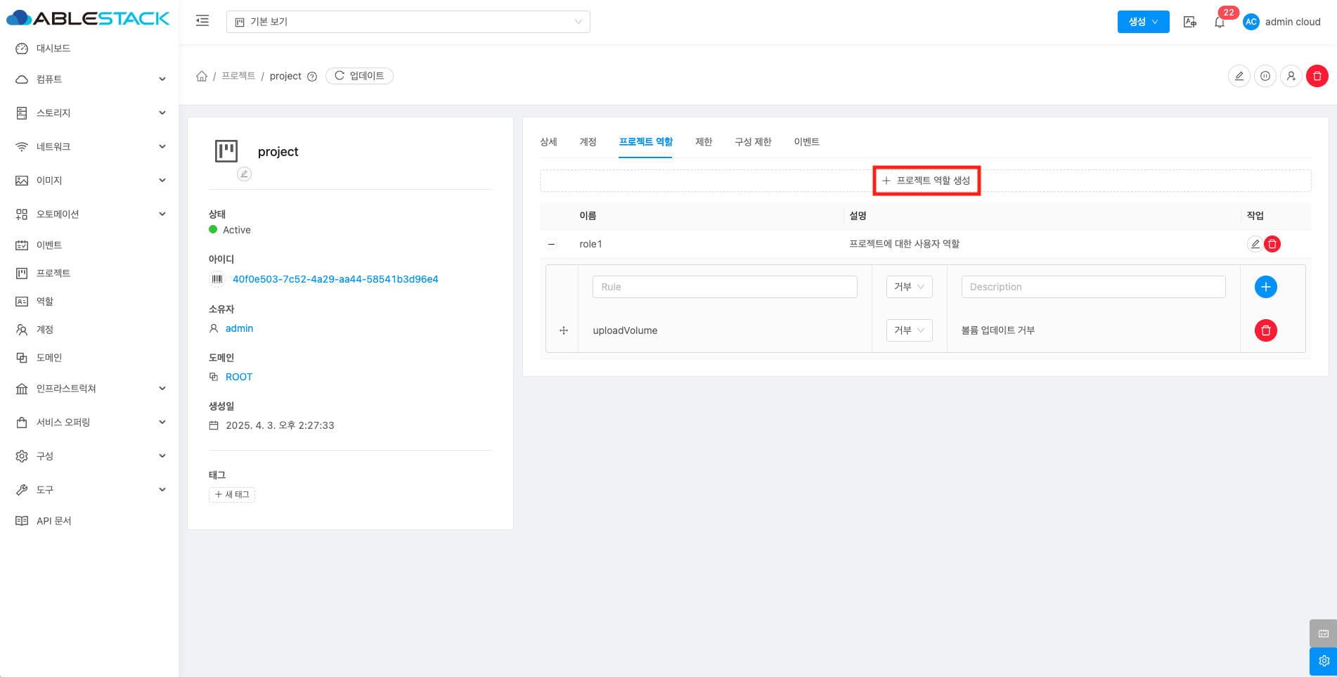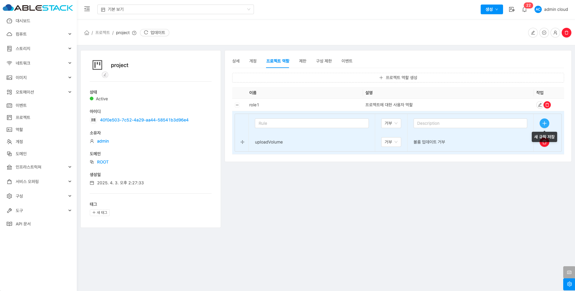 프로젝트 역할에 새로운 규칙을 등록합니다.