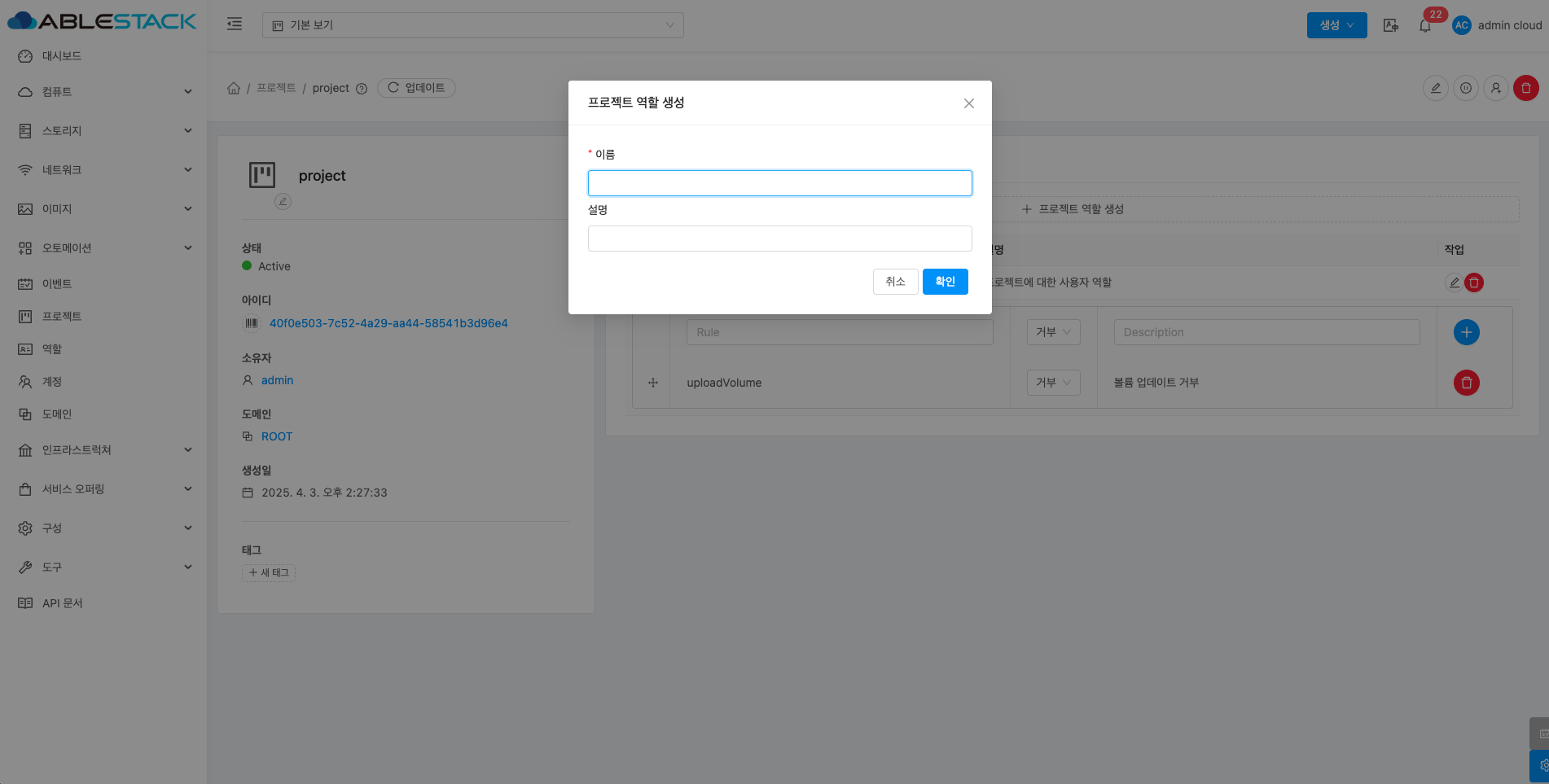- 확인 버튼을 클릭하여 프로젝트 역할을 생성합니다.