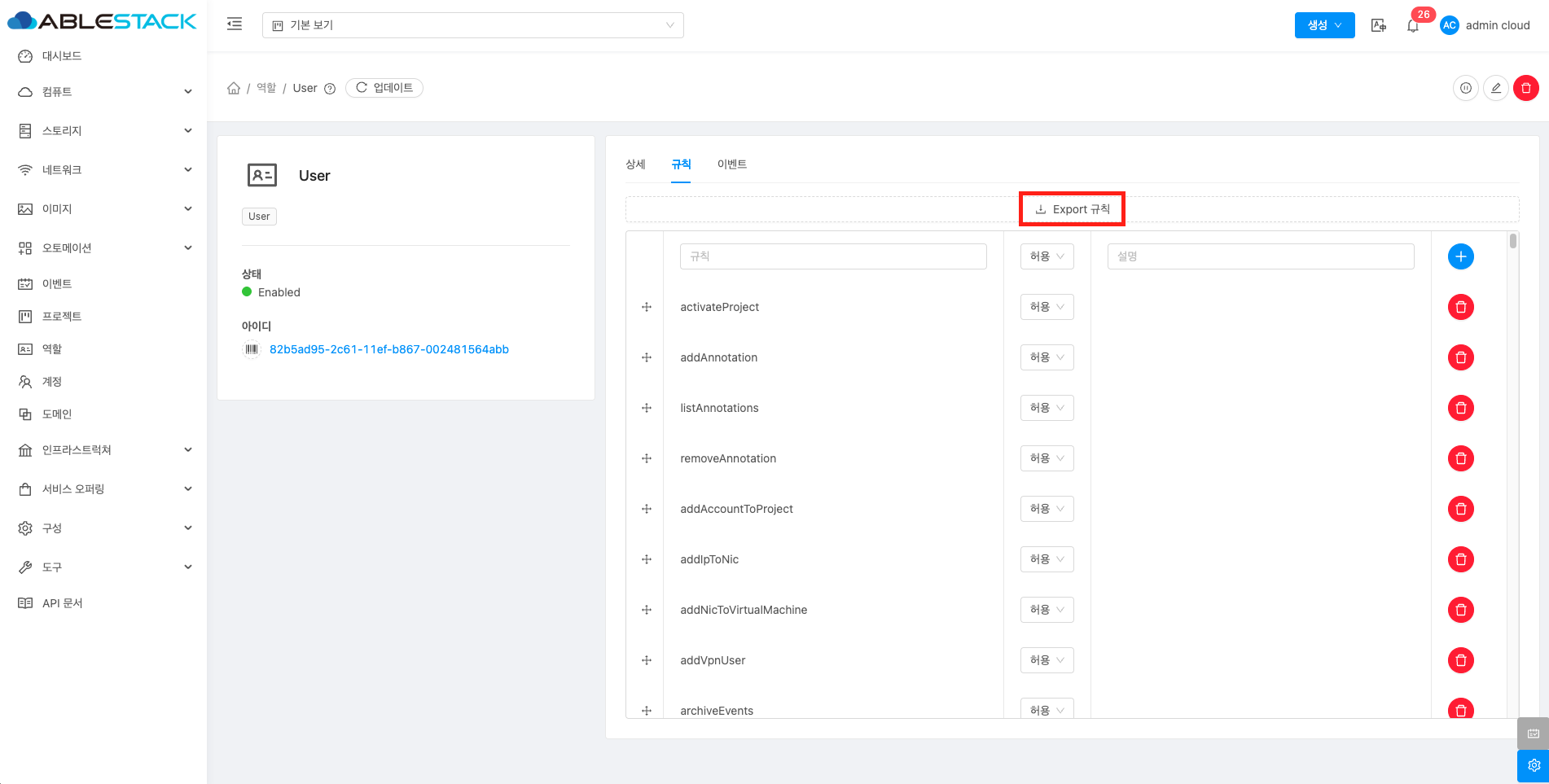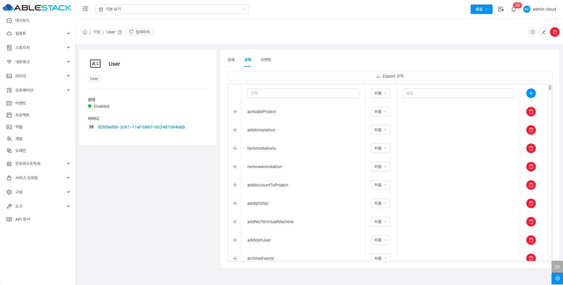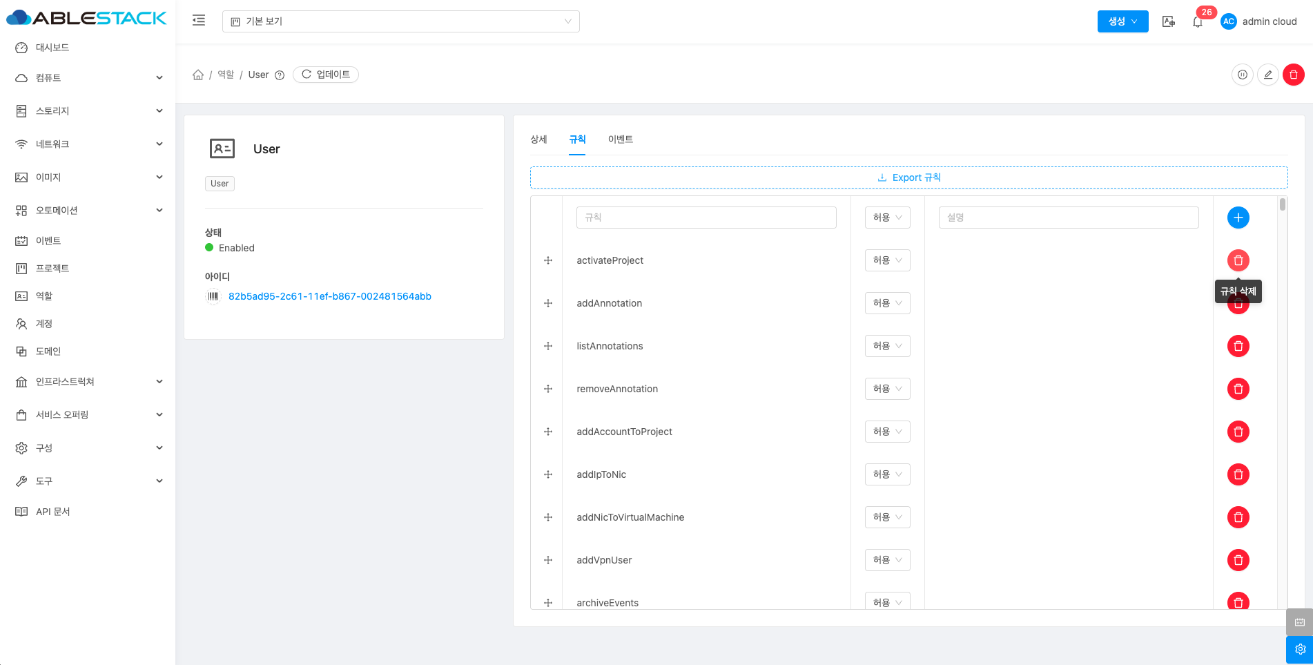 해당 역할에 규칙을 삭제할 수 있습니다.