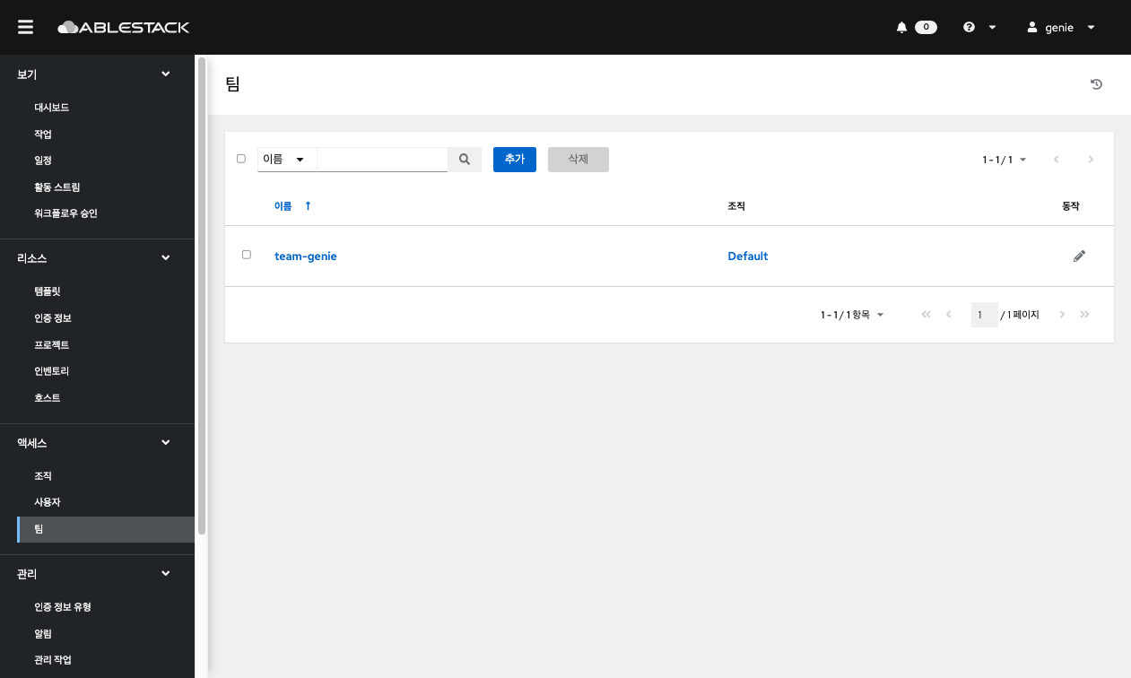 왼쪽 메뉴에서 팀 을 클릭하여 페이지에 액세스합니다.