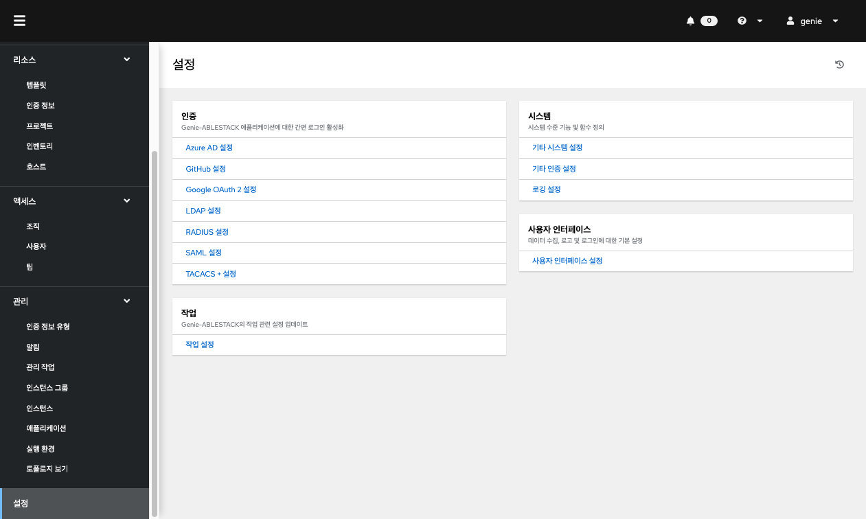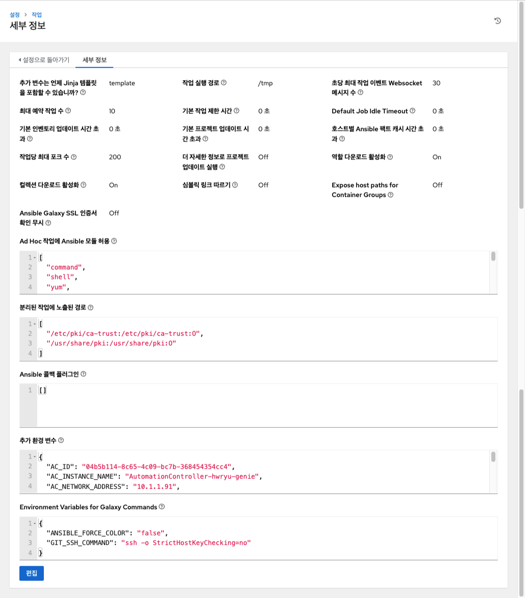 - 플레이북 실행, 인벤토리 업데이트, 프로젝트 업데이트 및 알림 전송을 위해 설정된 추가 환경 변수입니다. ABLESTACK Genie에서 전역적으로 사용되는 변수가 자동으로 추가되어 있습니다.