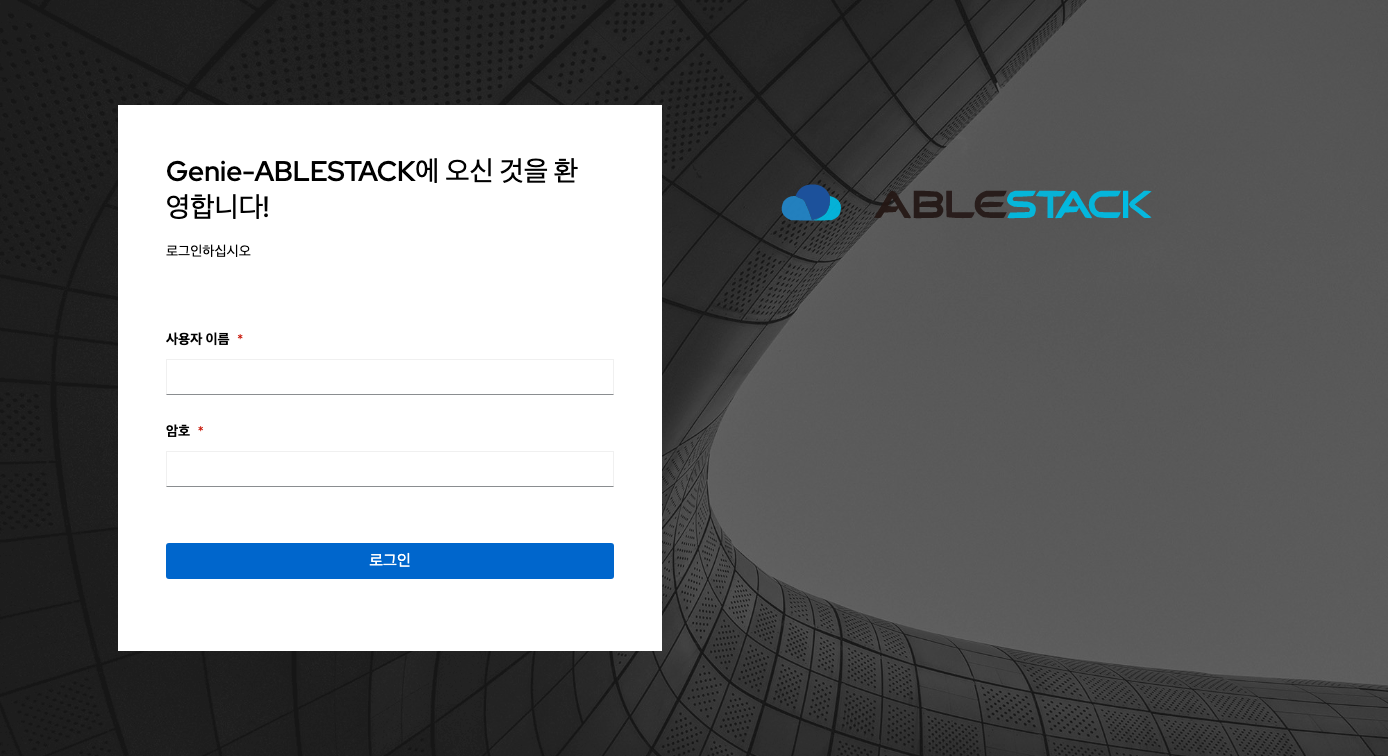 Genie 사용자는 해당 페이지에 사용자 아이디 및 비밀번호 를 입력하여 로그인을 할 수 있습니다.