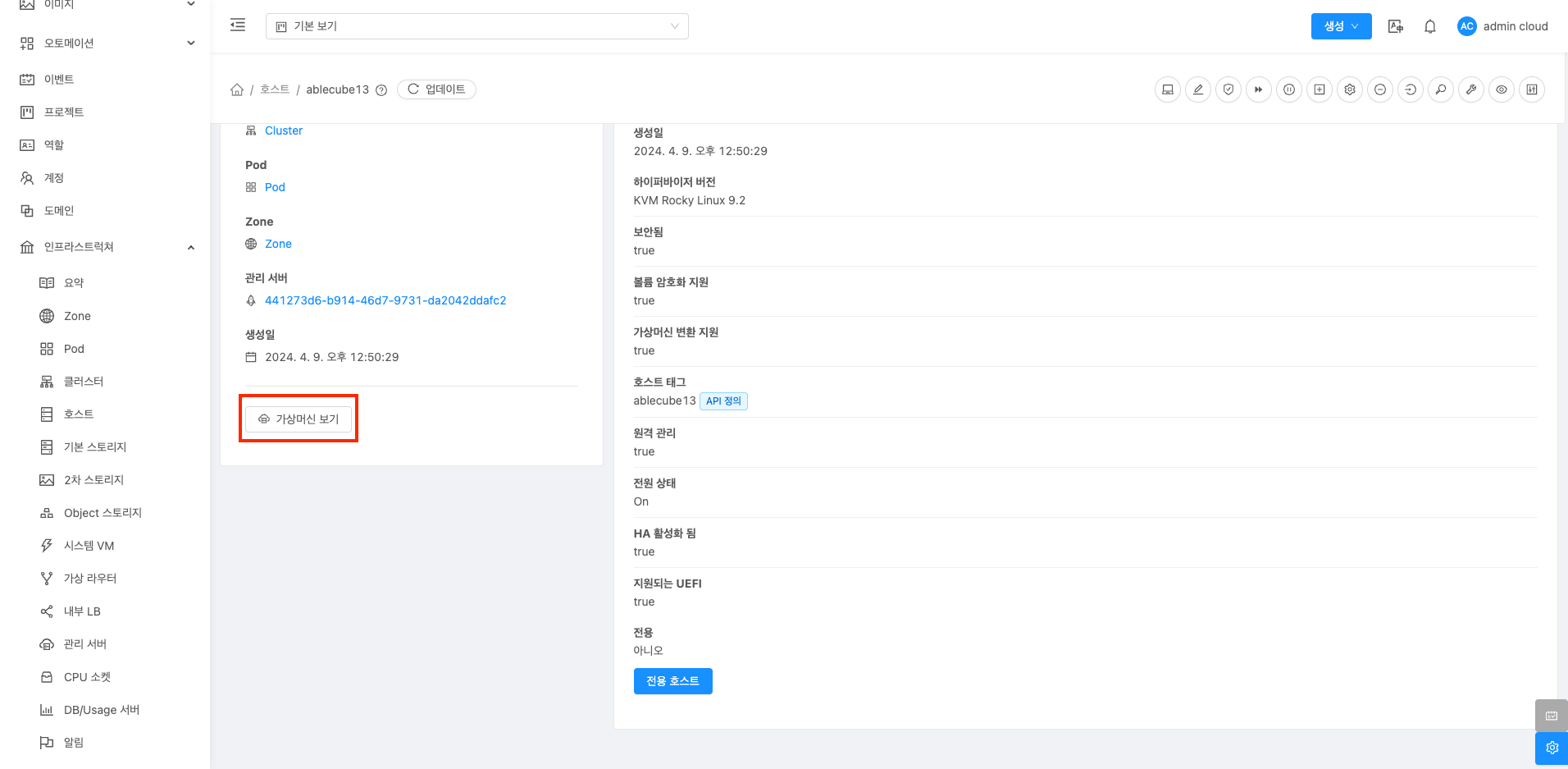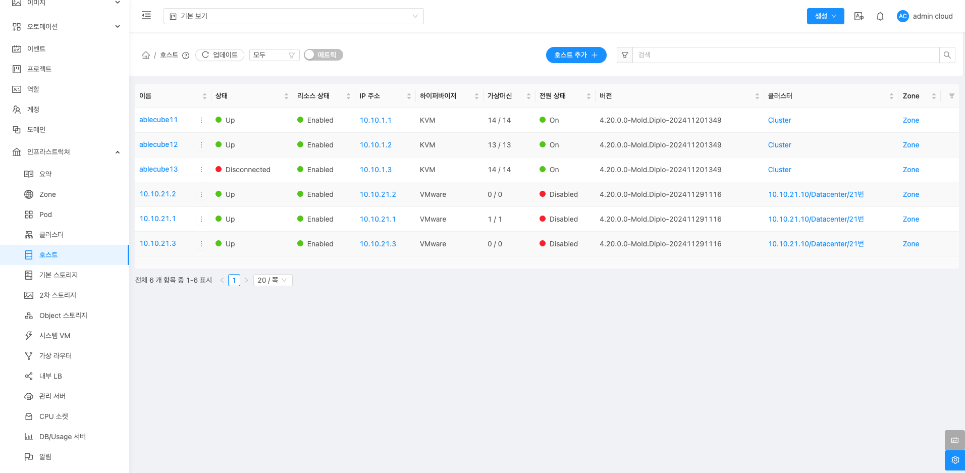 각 호스트별 Cube 웹 UI 접속 URL은 다음과 같습니다. https://[호스트IP]:9090