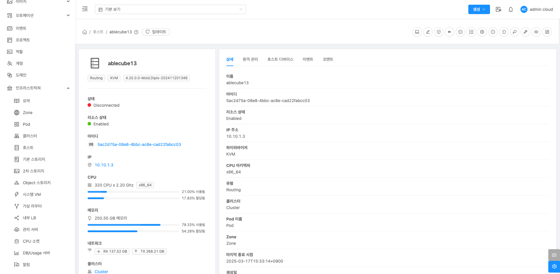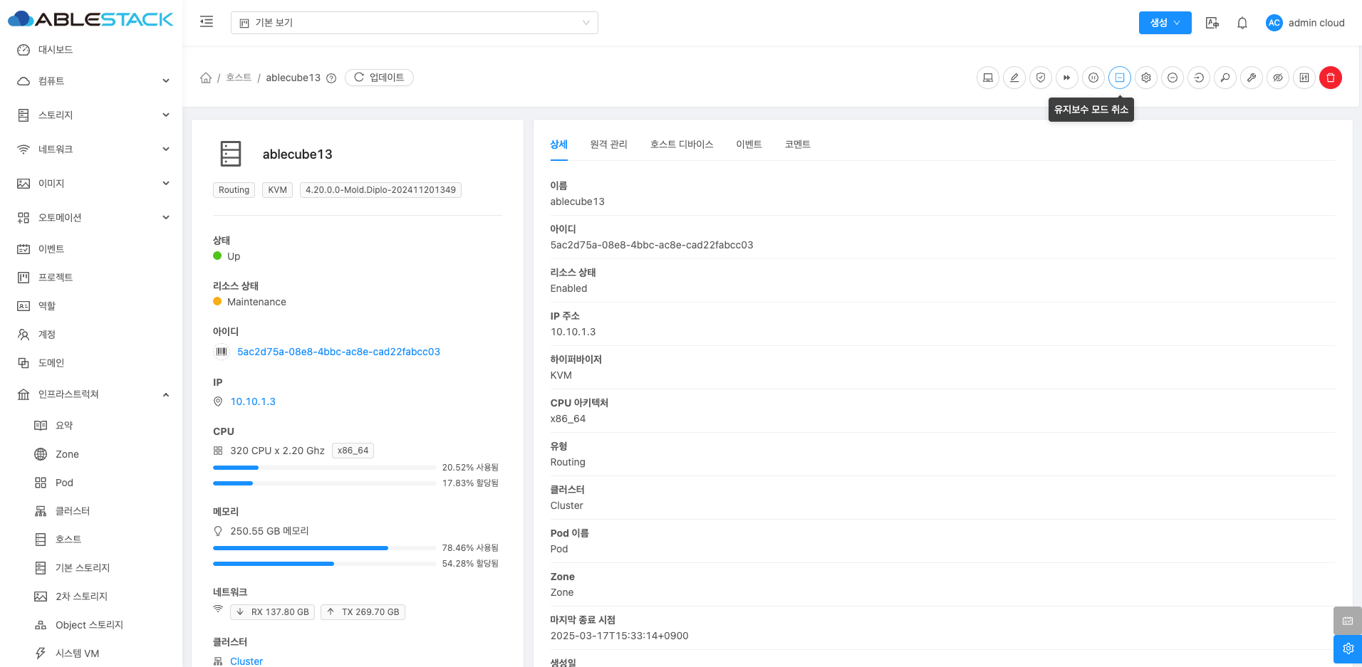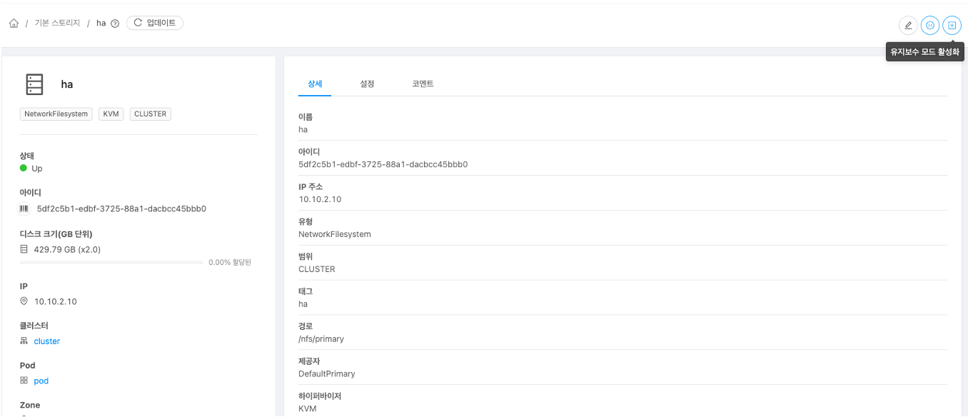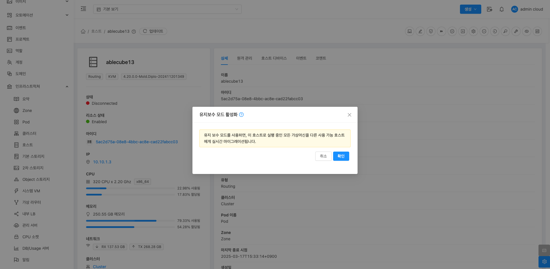 - 유지보수 모드에서 해제 및 호스트 활성화