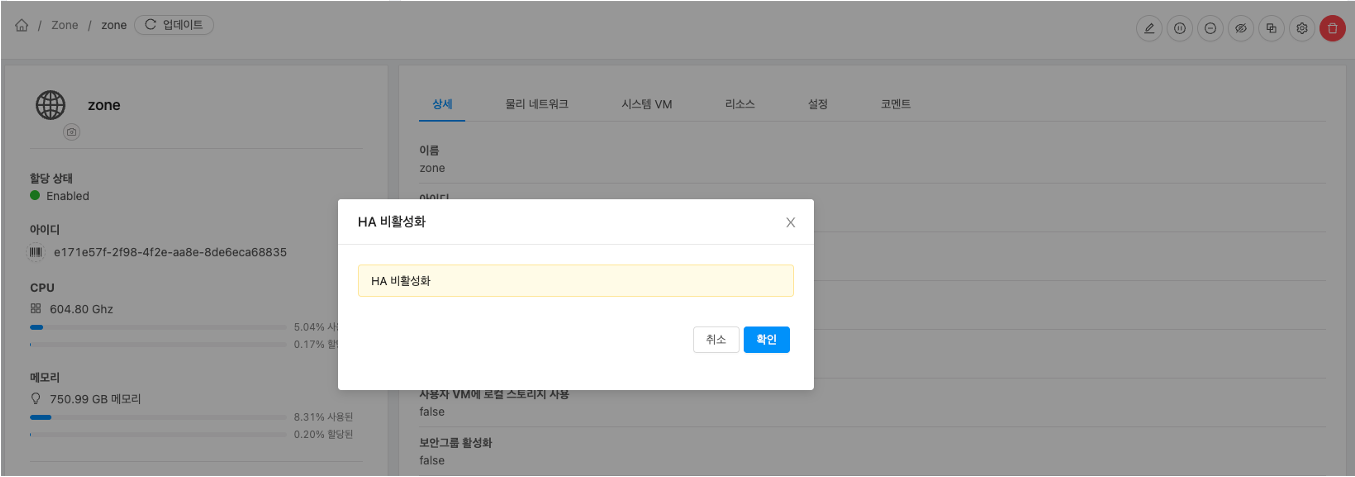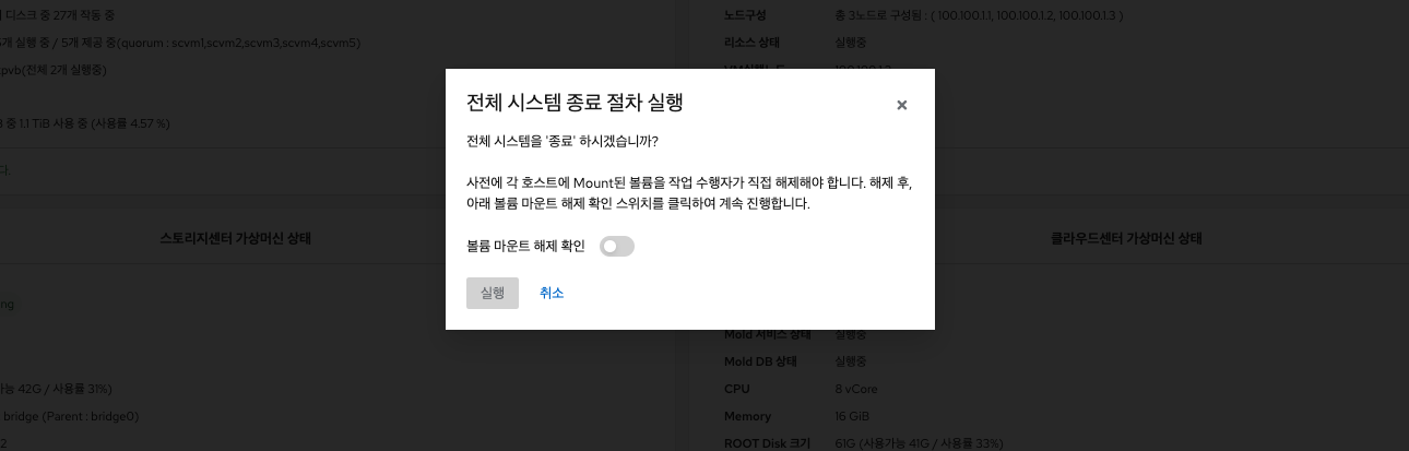 해당기능을 실행하기 전 반드시 각 호스트에 Mount된 볼륨을 작업 수행자가 직접 해제해야 합니다.