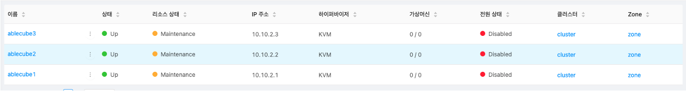 유지보수 모드 설정한 호스트가 변경 완료 되었을 때 다음 호스트 유지보수 모드 설정을 진행해야 합니다.