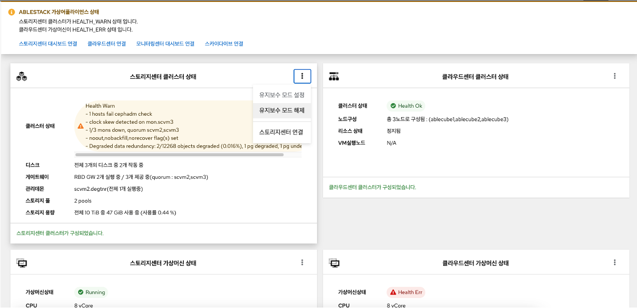 - 모든 스토리지센터 클러스터 유지보수 모드 설정