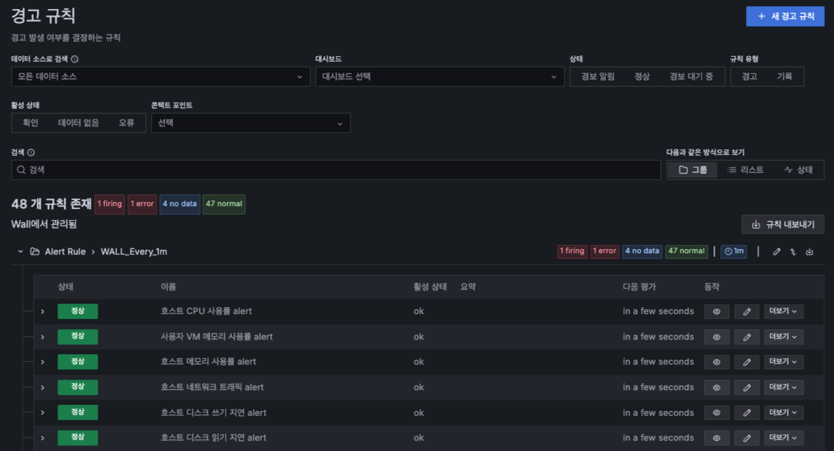 경고 규칙은 Wall에서 메뉴는 경고 조건을 설정하고 특정 임계값을 초과할 때 알림을 트리거하는 기능을 제공합니다.