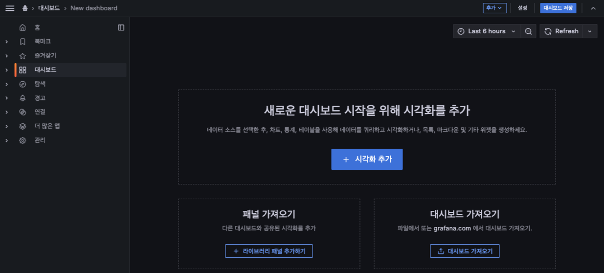 - 시각화 추가 : 대시보드에 패널 단위의 모니터링 정보를 추가할 수 있습니다.