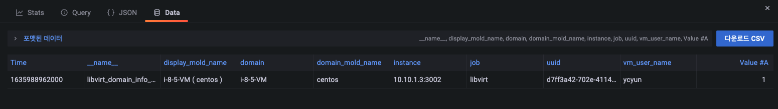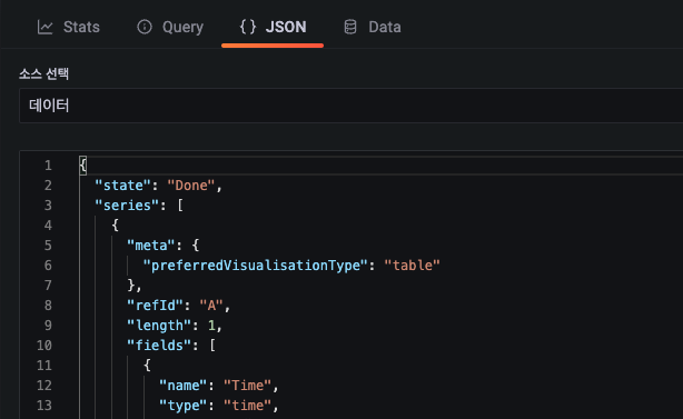 쿼리 조회 결과를 json 형식으로 확인 가능합니다.