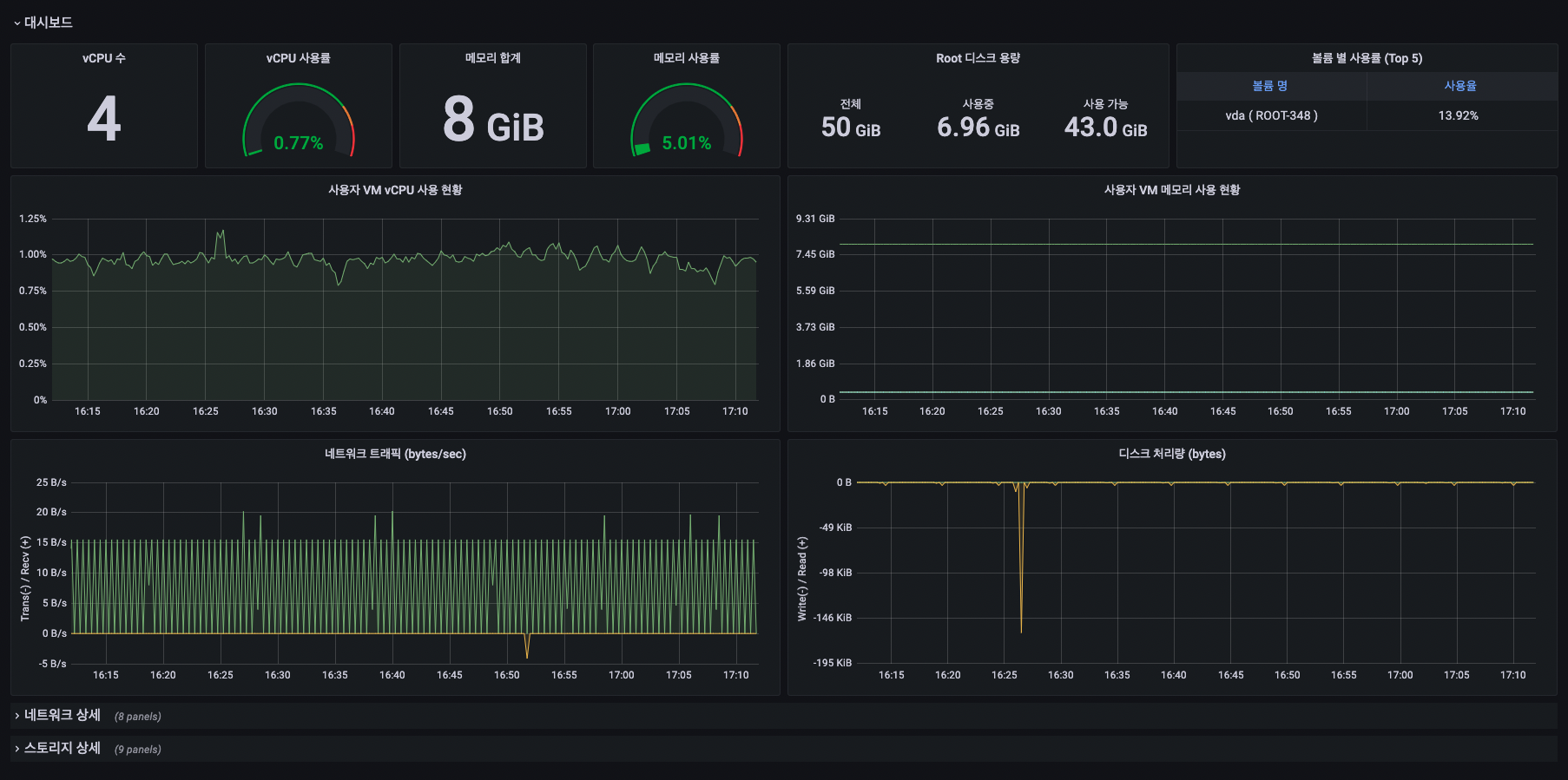 버튼을 클릭하면 해당 가상머신의 모니터링을 확인할 수 있는 Wall UI 대시보드 페이지로 접근 합니다.