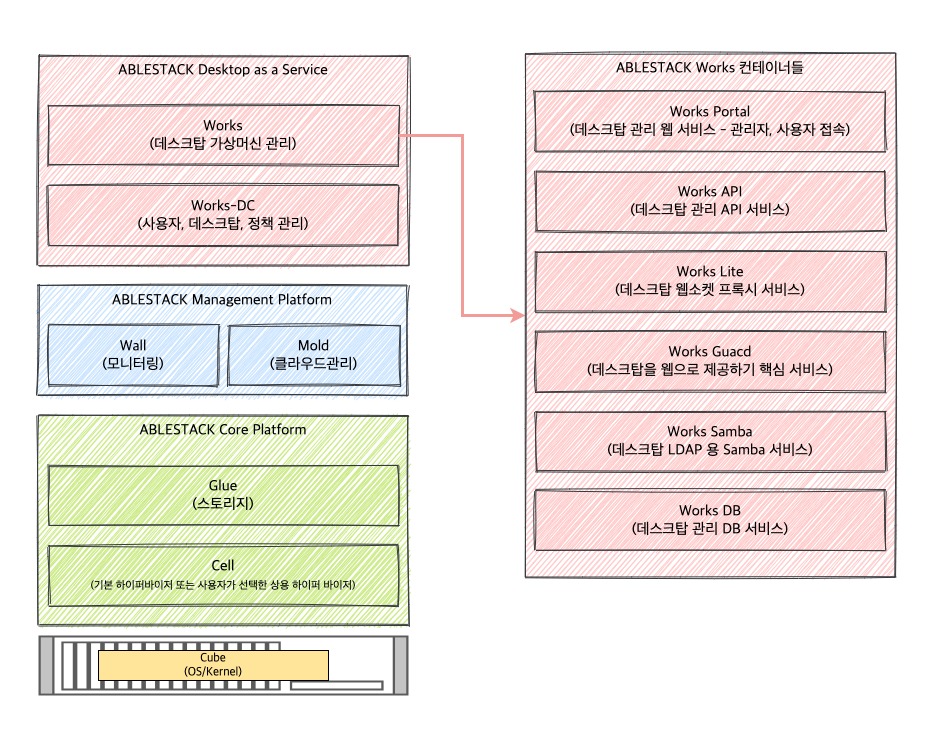 ABLESTACK의 Works는 Mold상에서 DaaS(Desktop As a Service)를 제공하는 플랫폼 입니다.