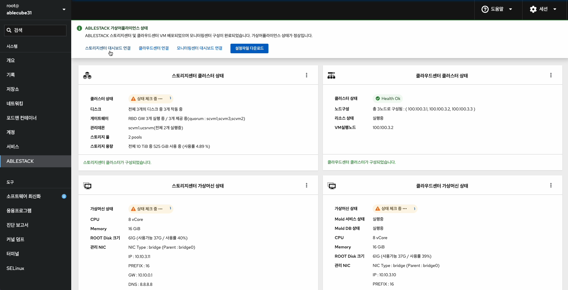 - 왼쪽 ABLESTACK 메뉴 클릭시 보이는 화면입니다.