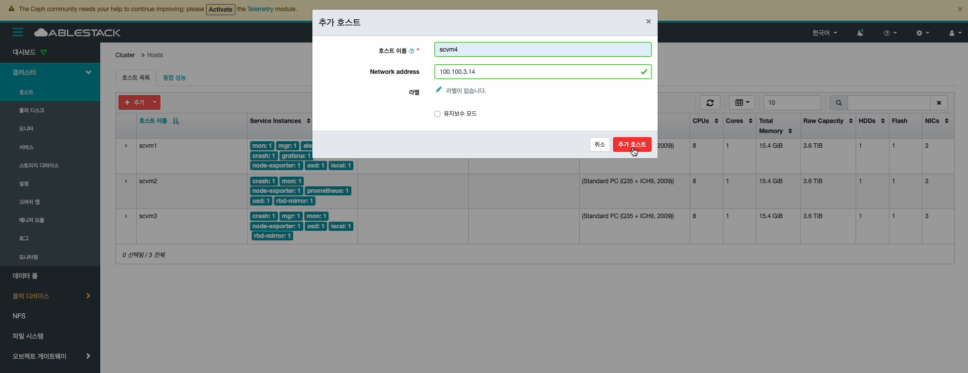 ABLESTACK HCI 호스트 추가 작업진행¶