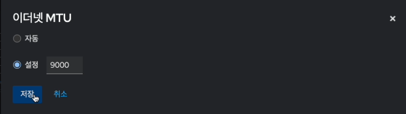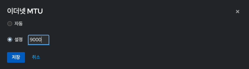 - MTU 항목의 편집 버튼을 눌러 들어온 MTU 설정 화면입니다.