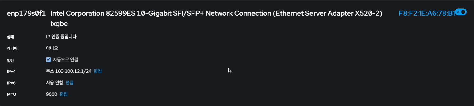 Public Storage Network 설정 할 시, 물리 인터페이스 및 본드 및 브릿지 MTU 설정 값이 같아야 합니다.