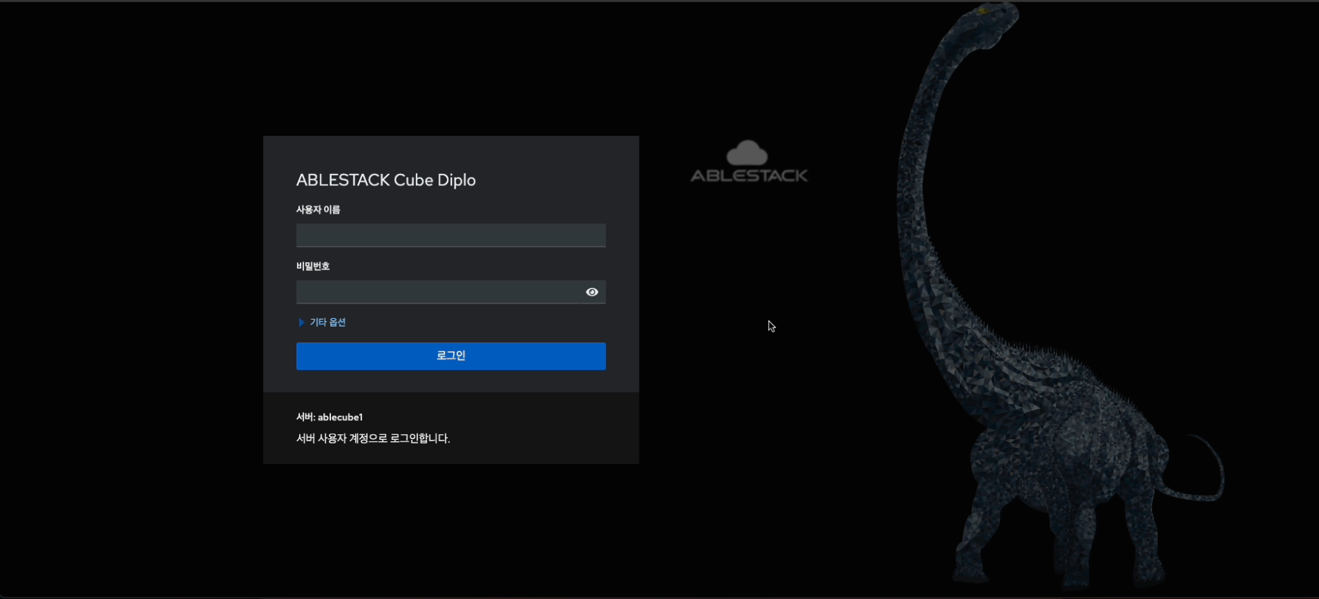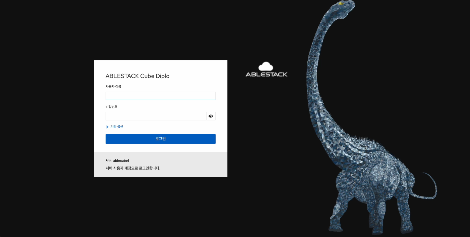 - ABLESTACK VM Cube 로그인 화면입니다.