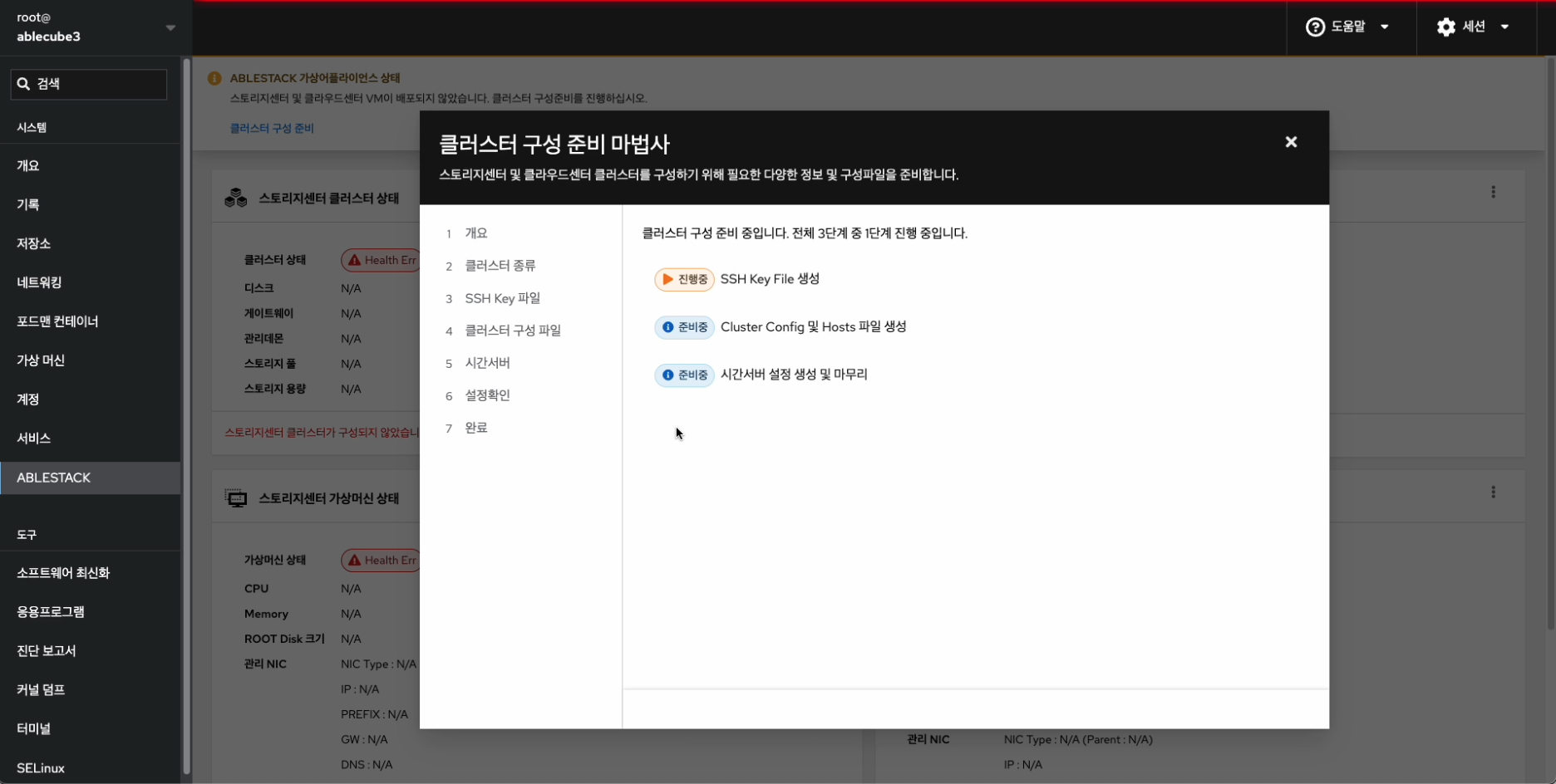 - 클러스터 구성 준비 3단계 진행상황을 확인합니다.