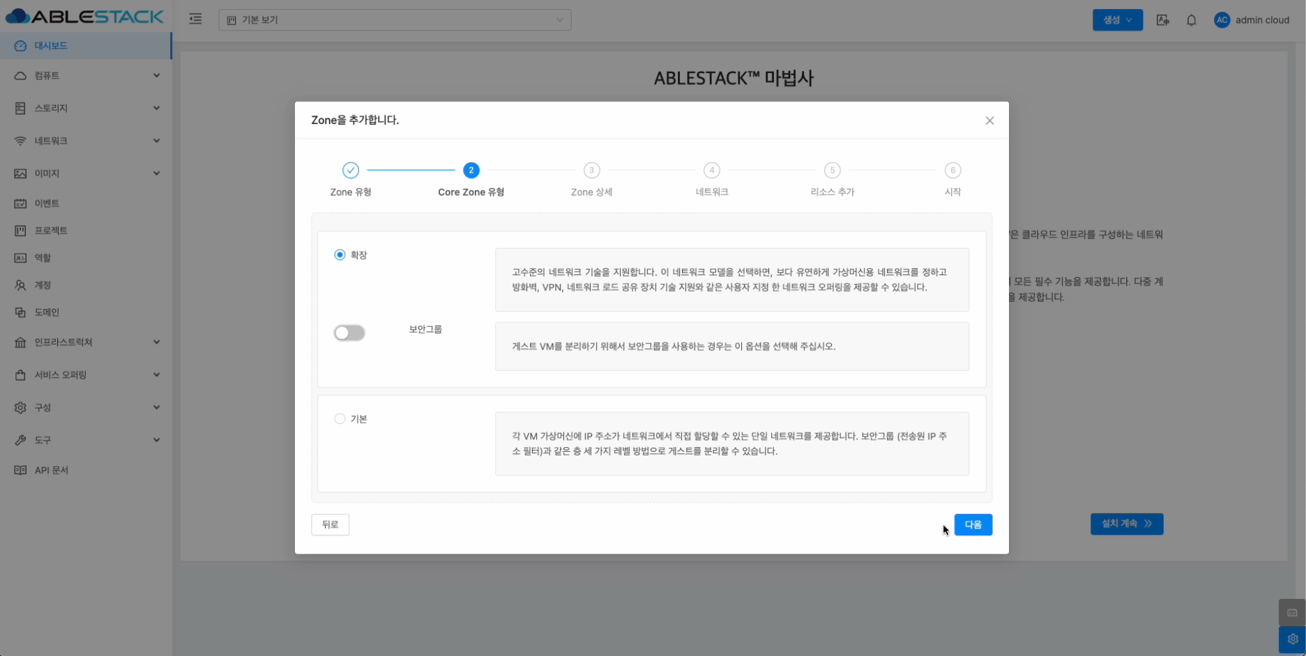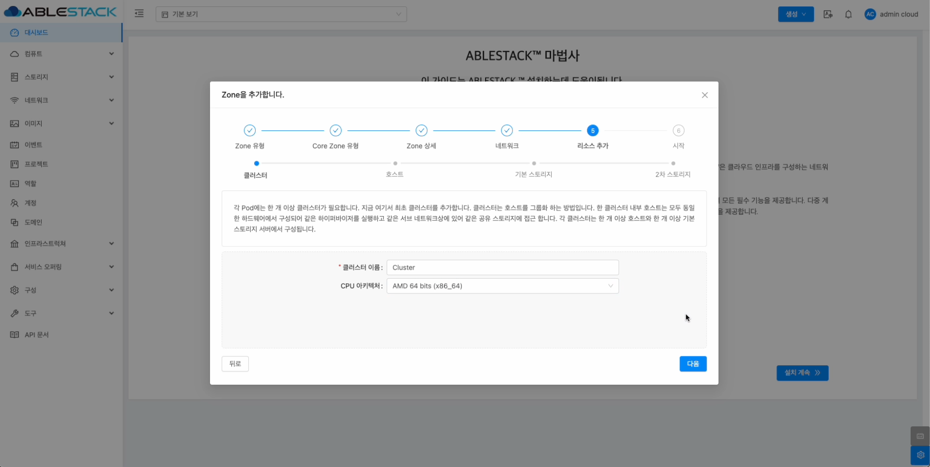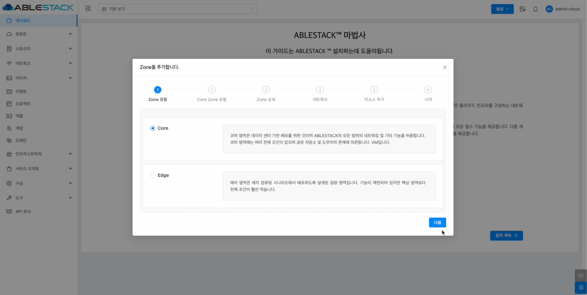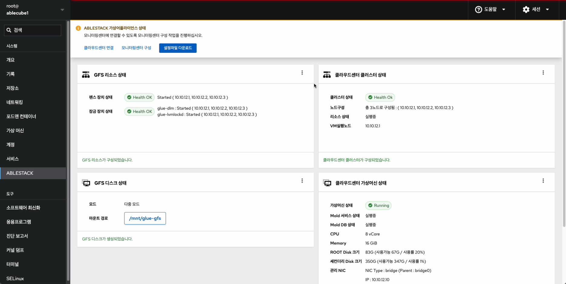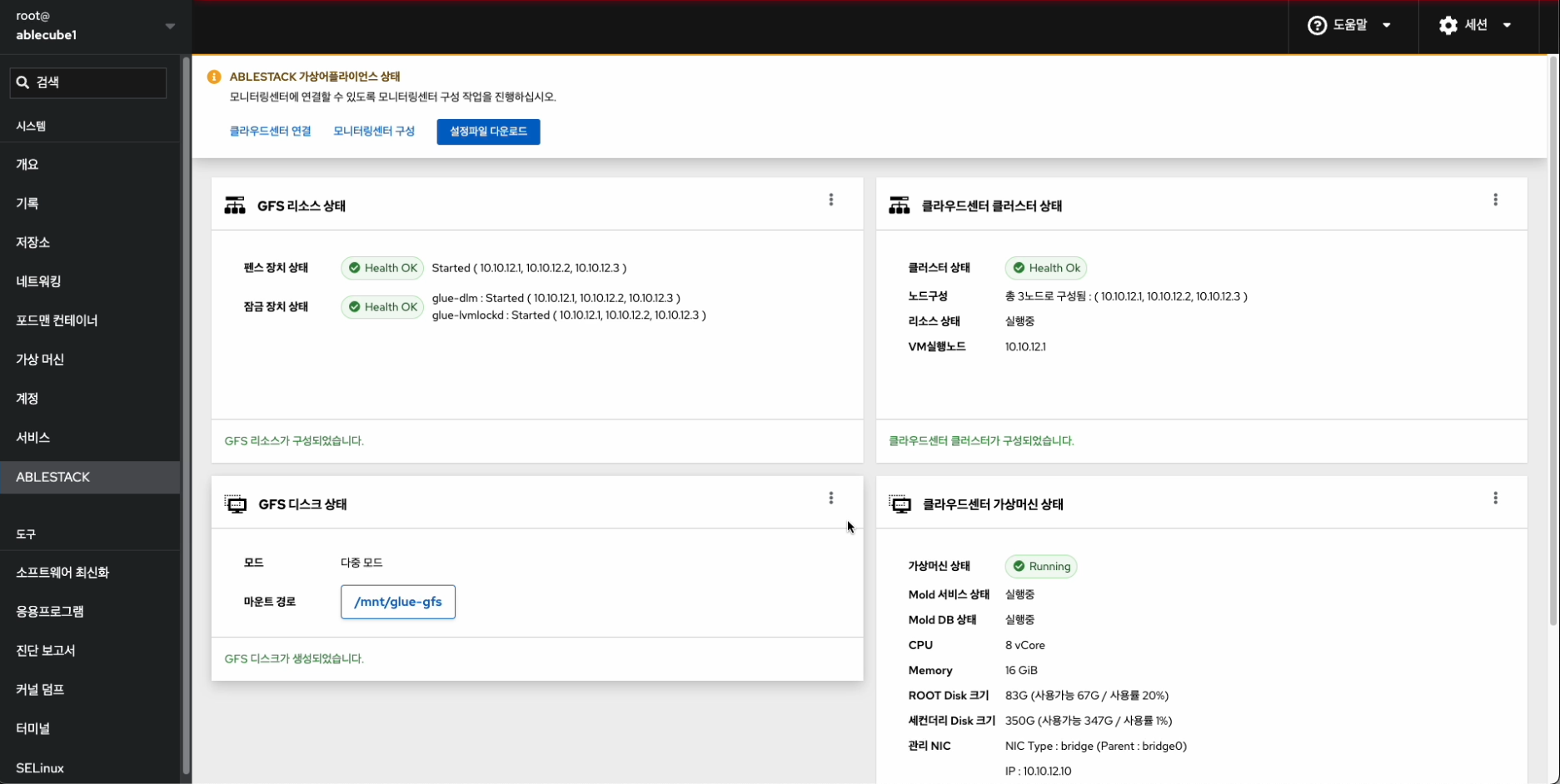 - 왼쪽 ABLESTACK 메뉴 클릭시 보이는 화면입니다.