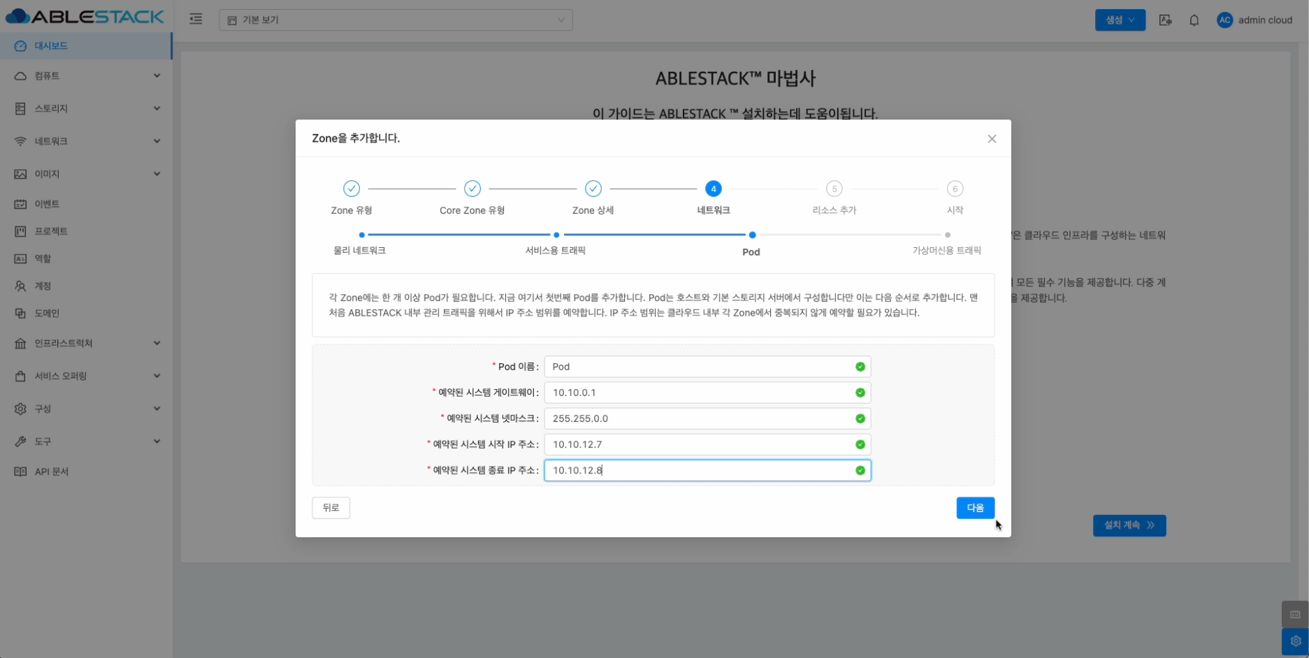 - Pod 네트워크 정보를 입력하는 화면 입니다.