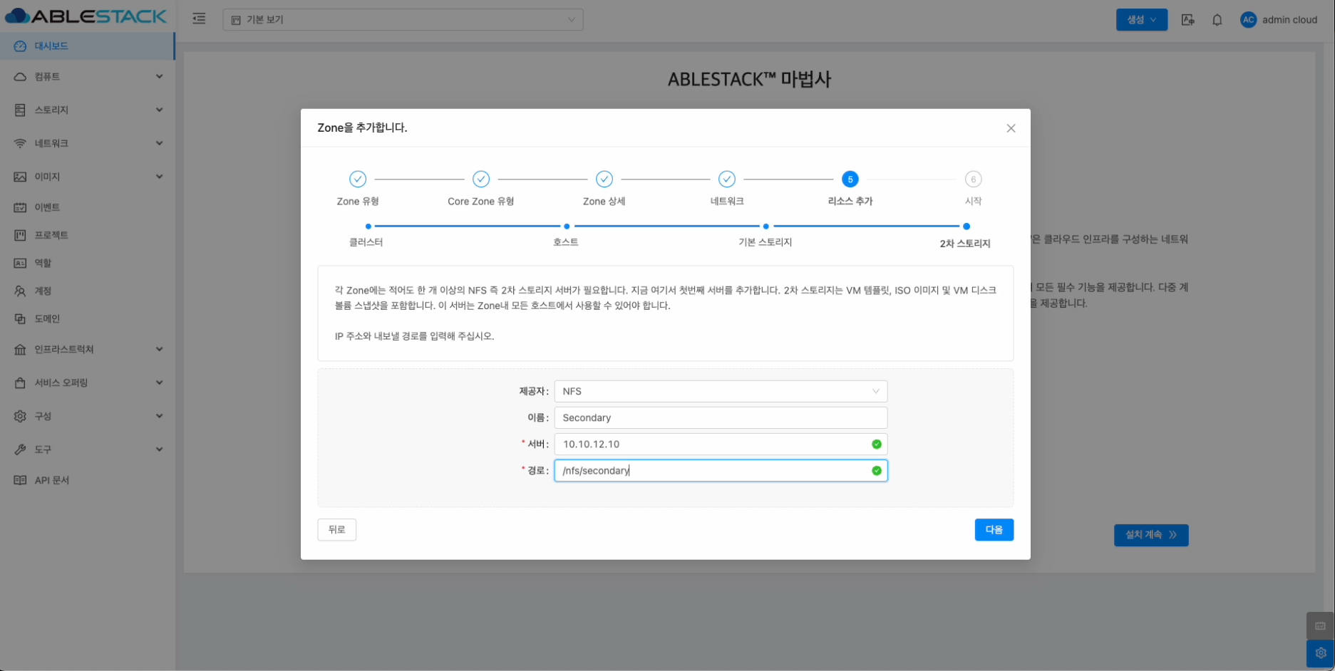 - 경로 항목에는 /nfs/secondary 를 입력합니다.
