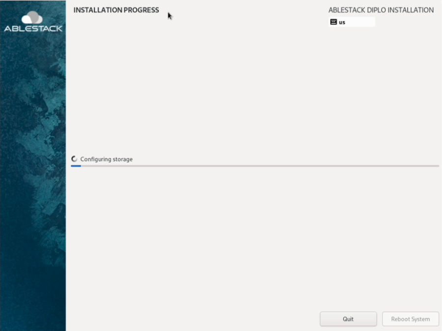 - 설치가 완료가 되면 자동으로 재부팅 절차가 진행되며 연결되어 있는 ABLESTACK ISO 또는 USB를 제거하여 ABLESTACK STANDALONE Cube 설치를 마무리 합니다.