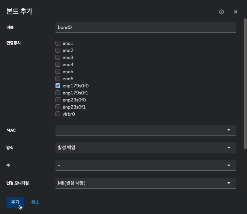 그리고 본드(bond) 구성이 필요한 경우 본드(bond)구성 완료 후 진행하셔야 합니다.