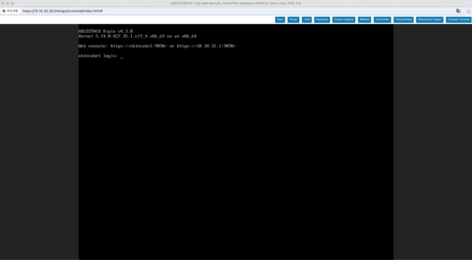 - 해당 화면은 IPMI 콘솔 화면입니다.