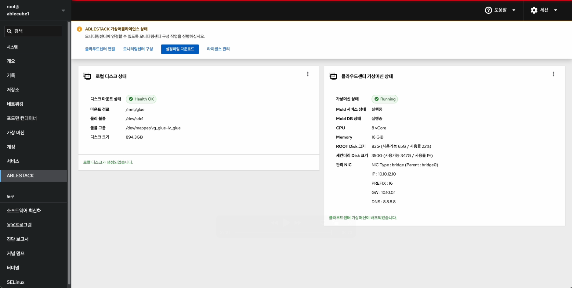 ABLESTACK STANDALONE Wall 구성진행¶