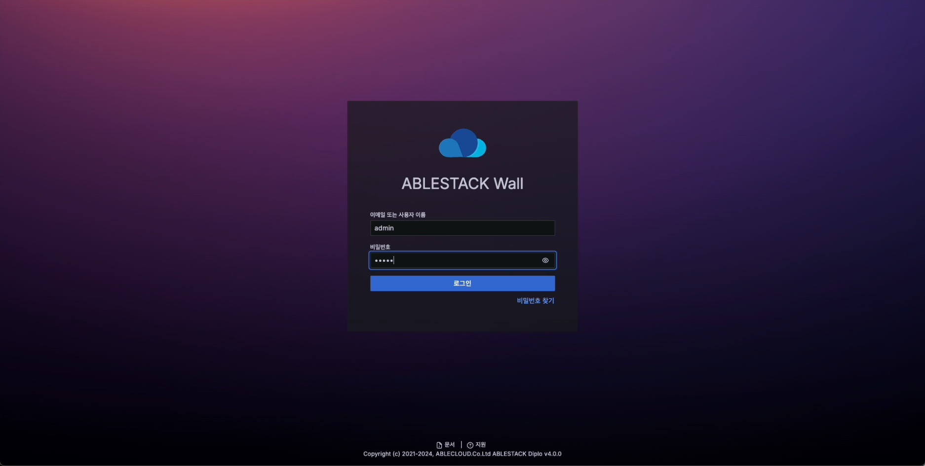 초기 아이디는 admin 이며, 초기 비밀번호는 admin 입니다.