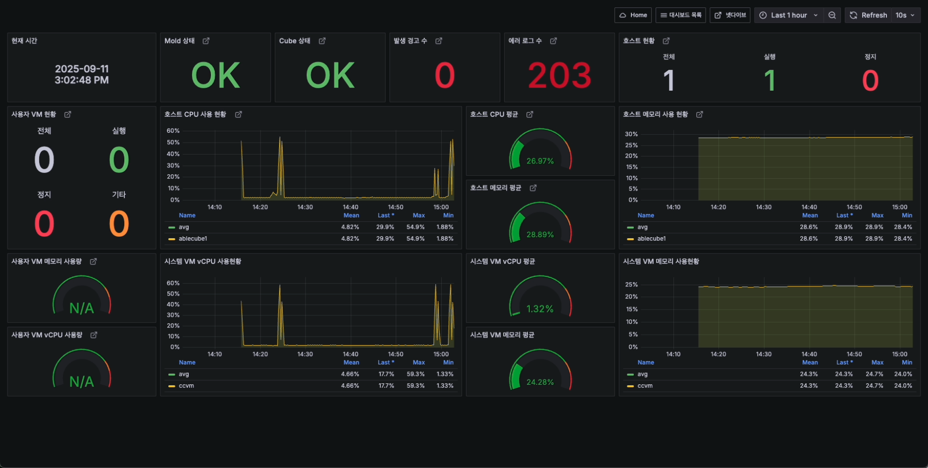 - 모니터링센터 대시보드 구성 완료 화면입니다.