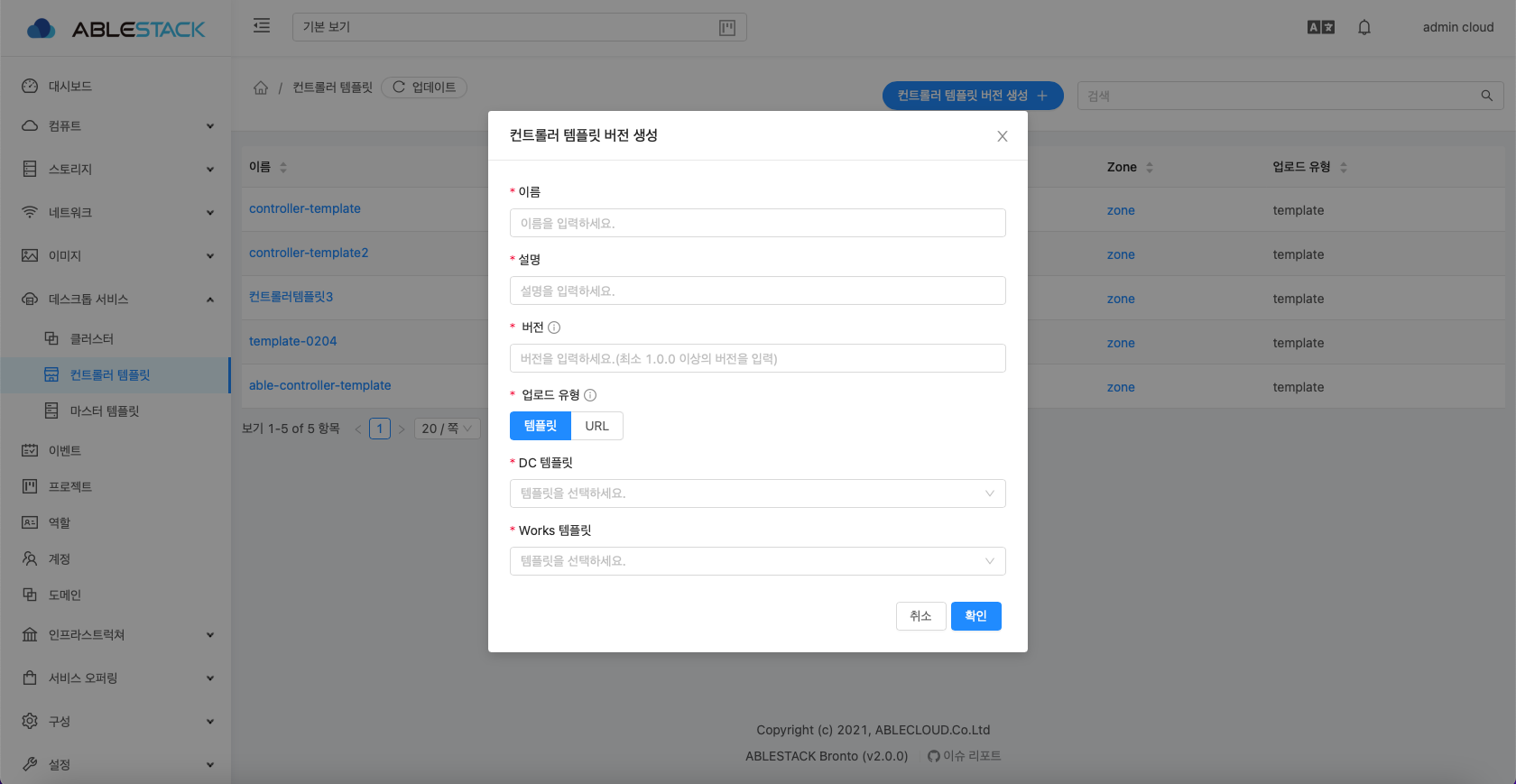 - DC VM 템플릿 업로드 URL 입력창에는 DC 용 템플릿 다운로드 URL 을 입력 할 수 있습니다.