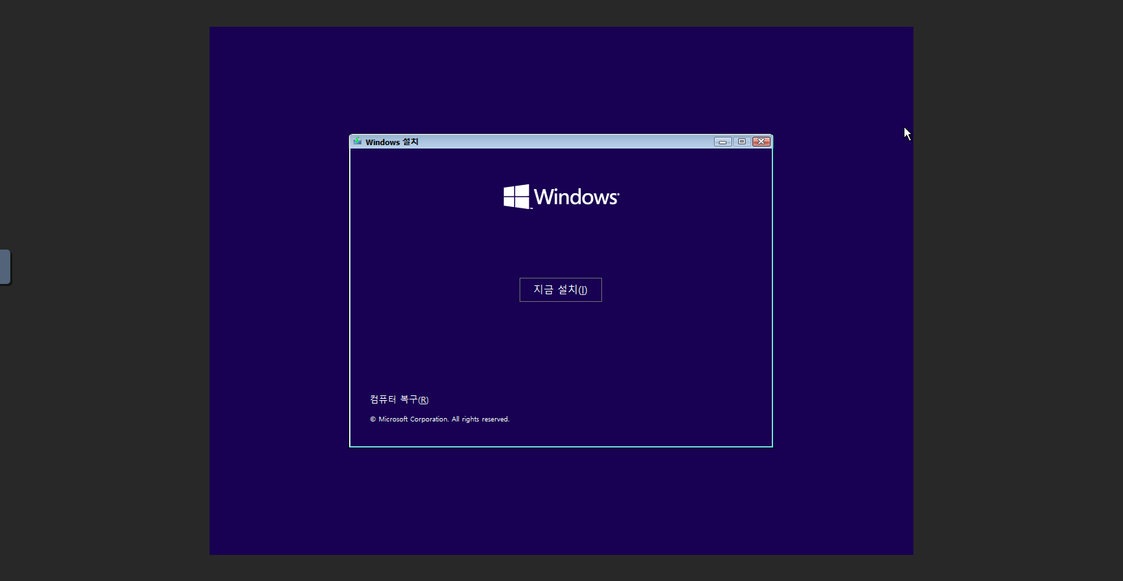Windows 10 설치 초기 화면입니다.