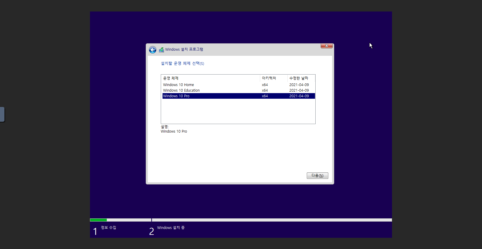 Windows 10 설치할 운영 체제 선택
