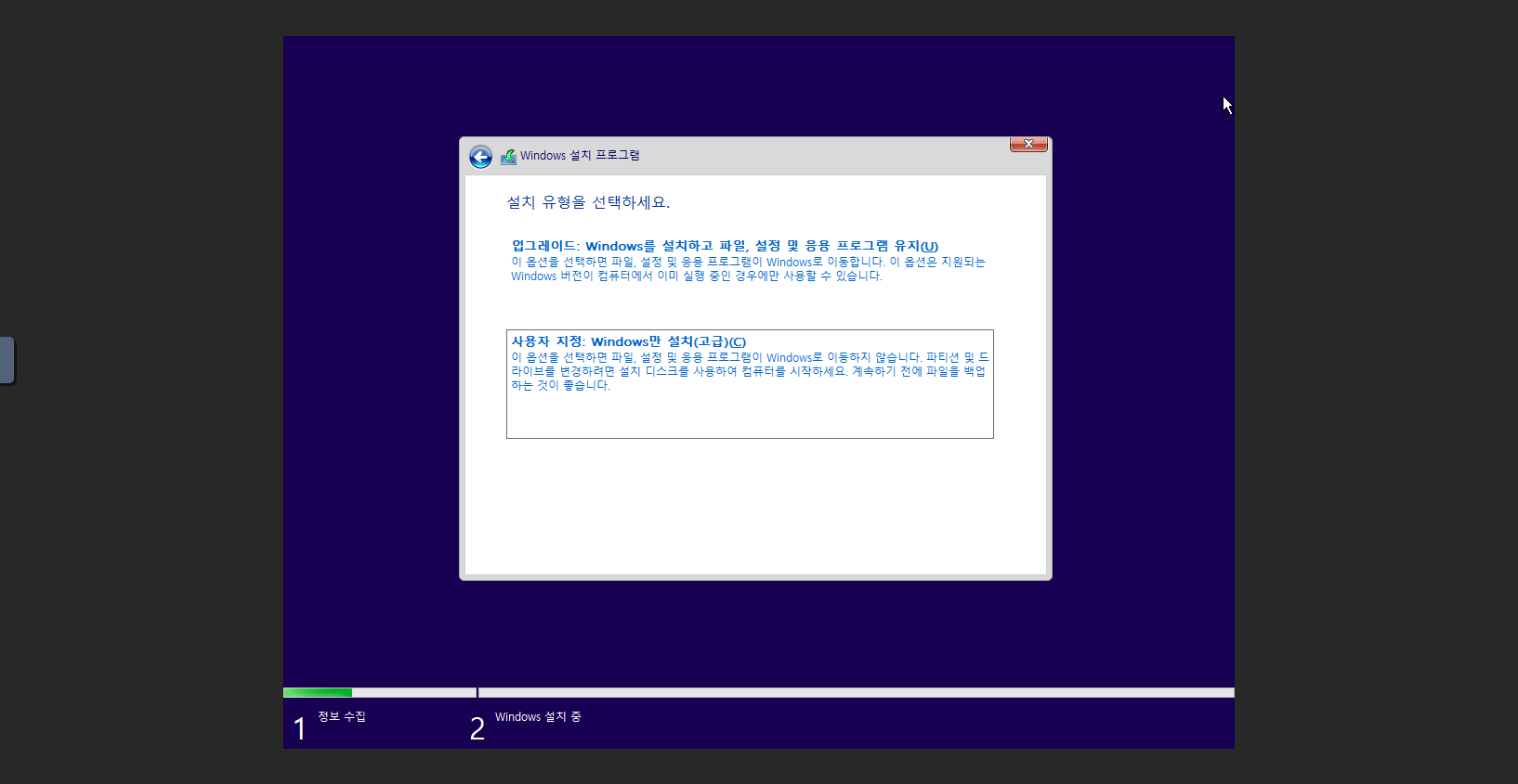 Windows 10 설치 유형