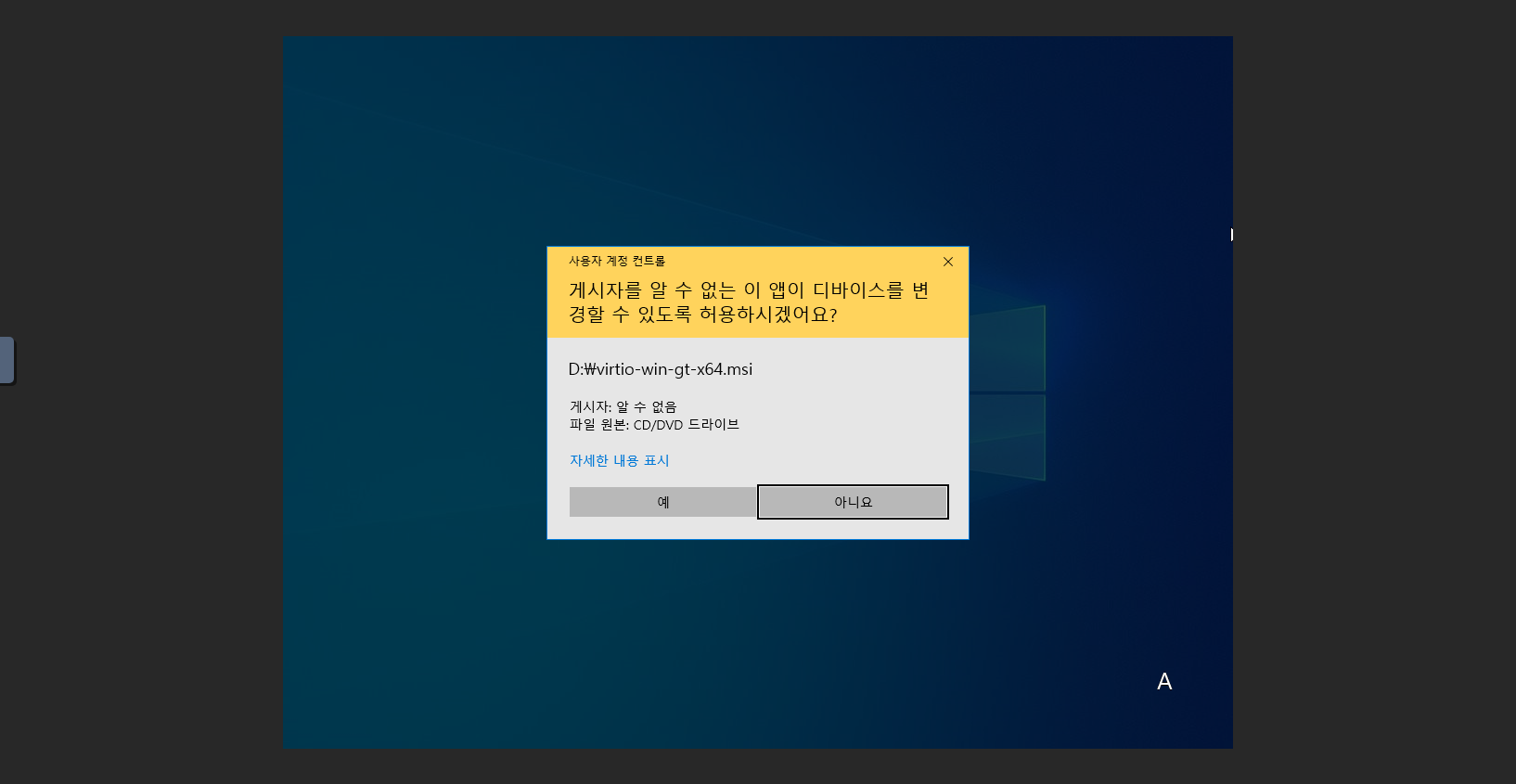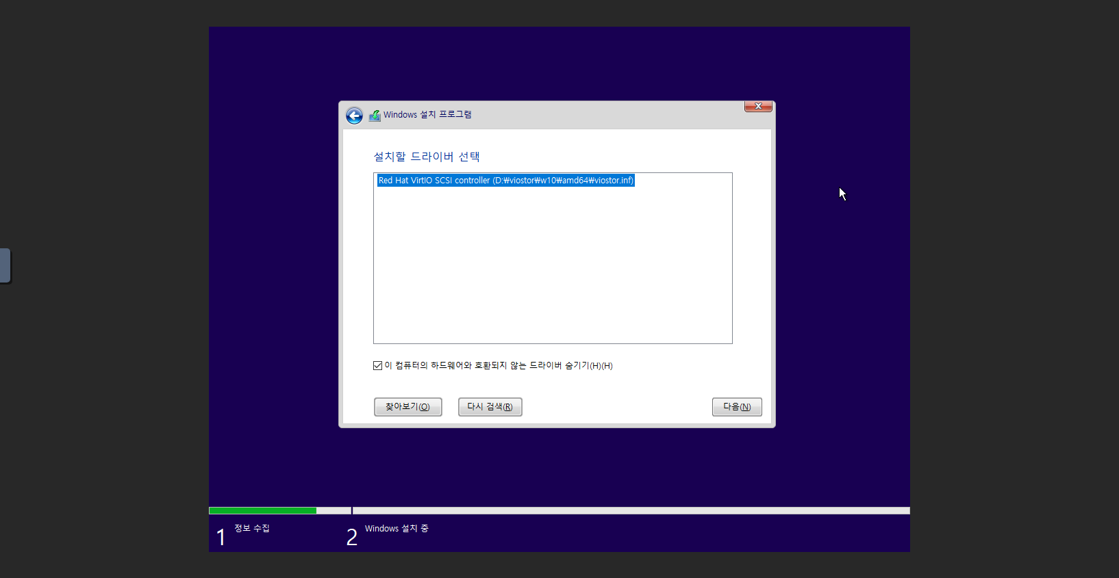 VirtIOStor 설치 진행¶