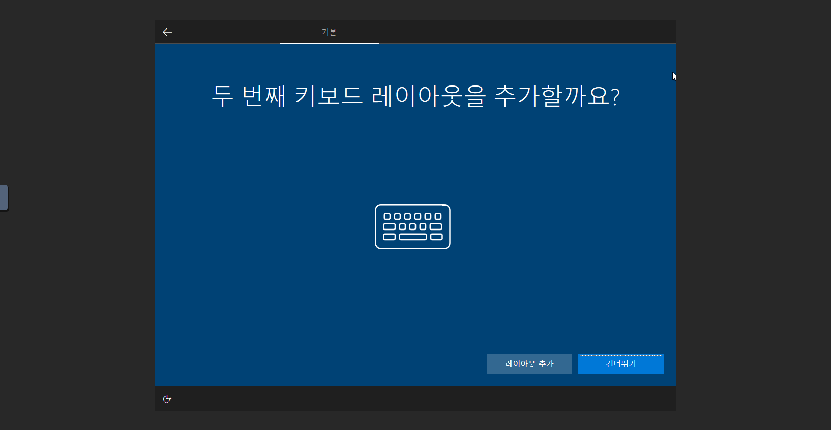 - 키보드 종류 : Windows 10 OS 키보드 종류를 선택 합니다.