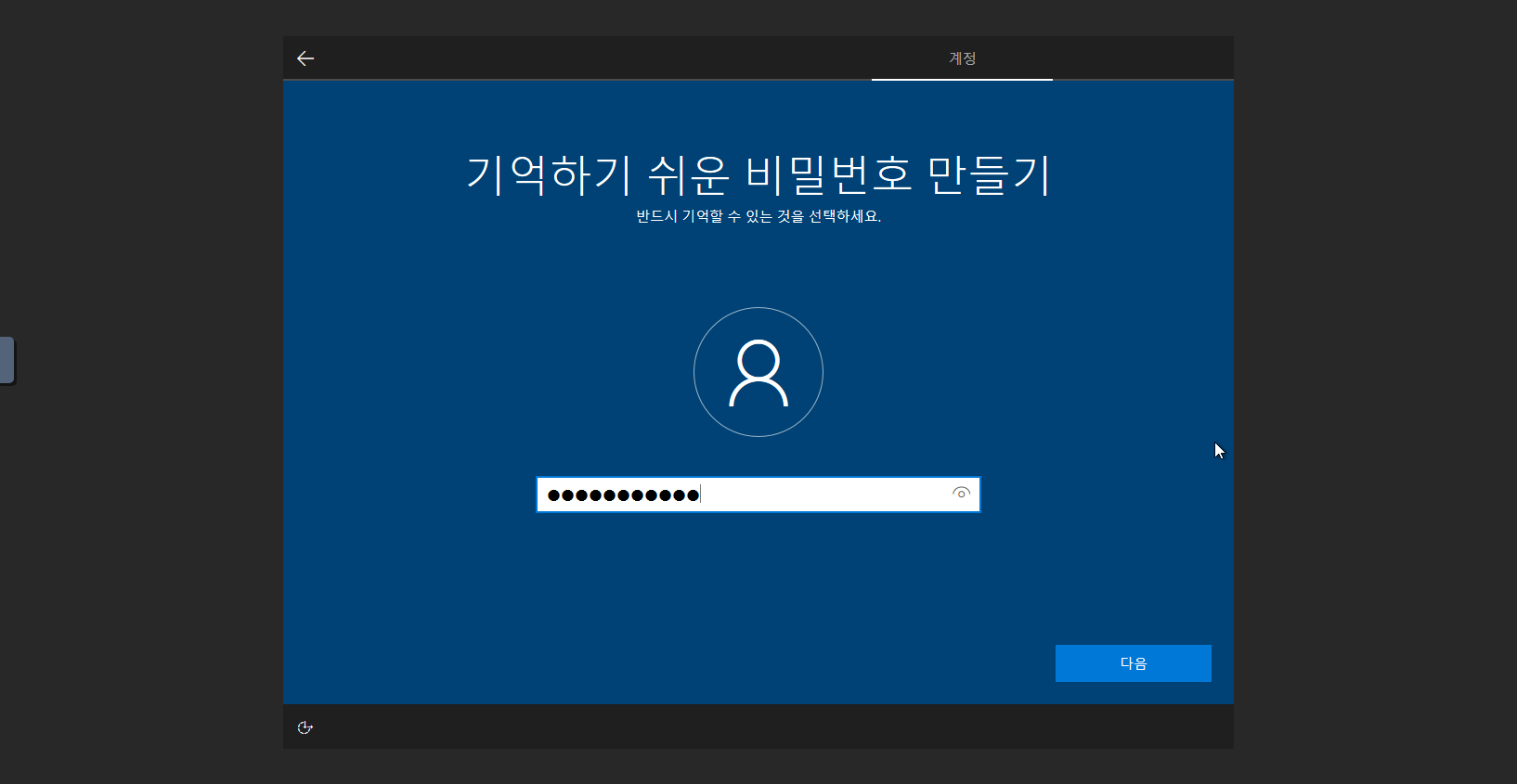 7. 비밀번호 를 설정한 후에 다음 버튼을 클릭 합니다.