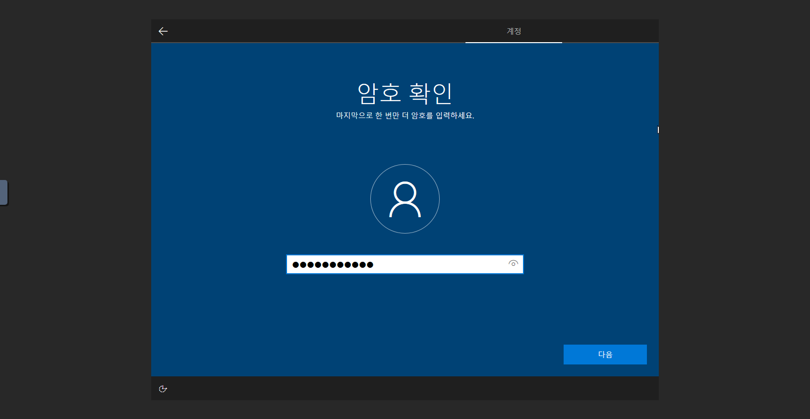 8. 비밀번호 를 한번더 입력 후 다음 버튼을 클릭 합니다.